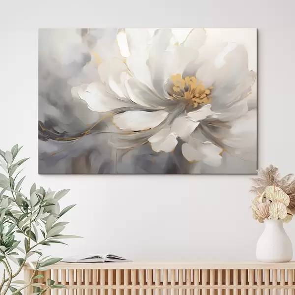 Wandbilder Weiße Blume mit Akzenten im abstrakten Stil Art. s44838