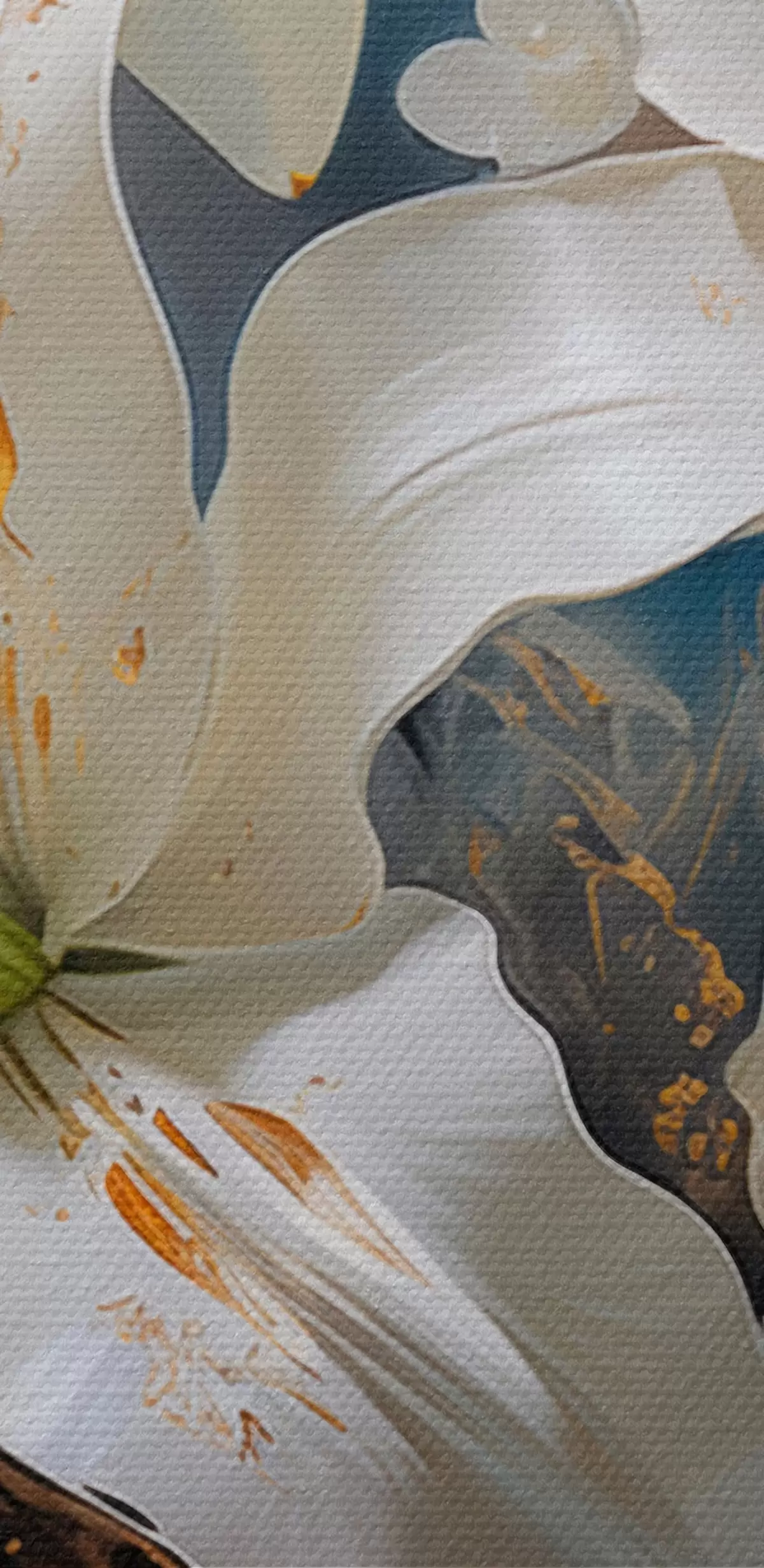 Drei Materialtypen stehen zur Verfügung: Economic Canvas - ein dichtes und haltbares Material für den Digitaldruck, identisch mit Malerleinwand, wasserfeste Oberfläche, realistische Wiedergabe von Details, mittelkörniges Material. Premium Canvas - die Textur ähnelt der einer Malerleinwand (verwobene kleine Fäden). Weiche, detaillierte Wiedergabe des Bildes auf einer matten Oberfläche. Eco-Premium - hochwertiges Gewebe aus 100% Baumwolle. Dank der natürlichen Baumwollfasern ist das Material langlebig und verschleißfest. Hervorragende Farbwiedergabe und Detailtreue.