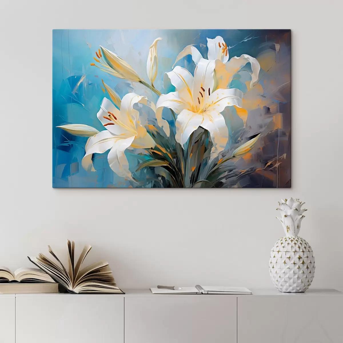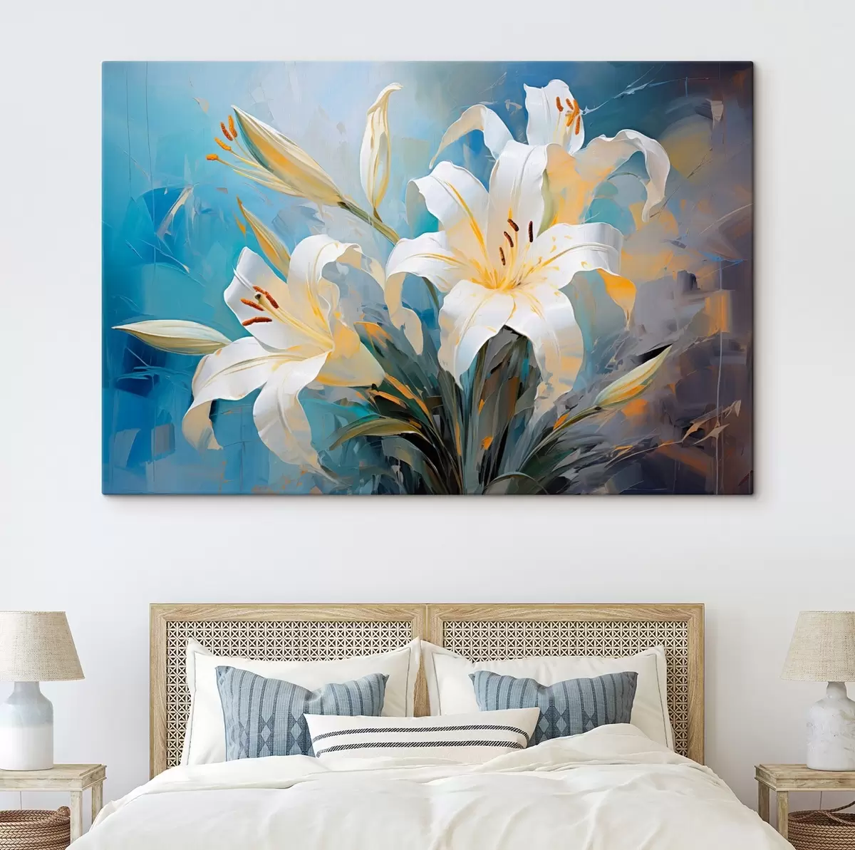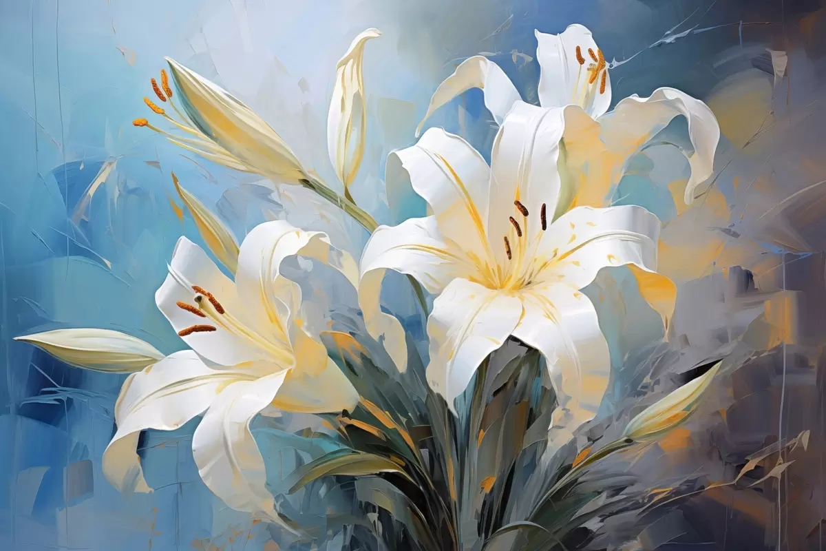 Wandbilder Abstrakte Lilien auf einem bunten Hintergrund im Kunststil Art. s44849