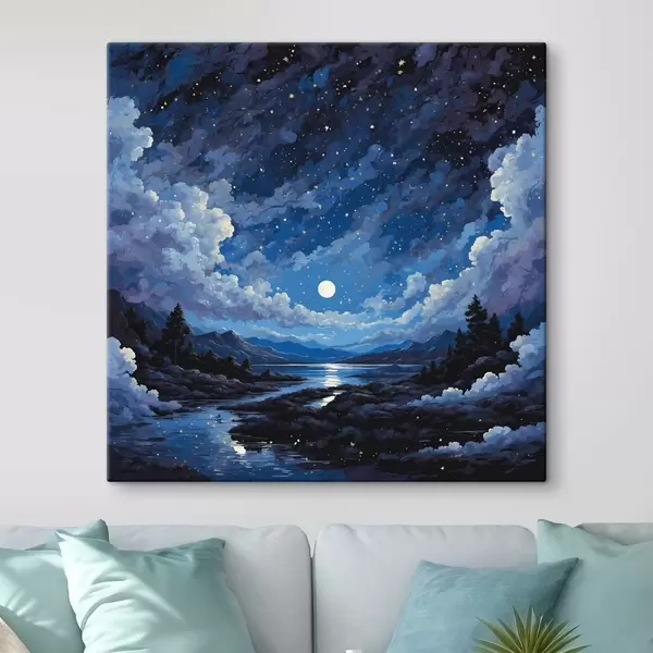 Wandbilder Nachthimmel mit Mond und Sternen über einer Berglandschaft Art. s44872
