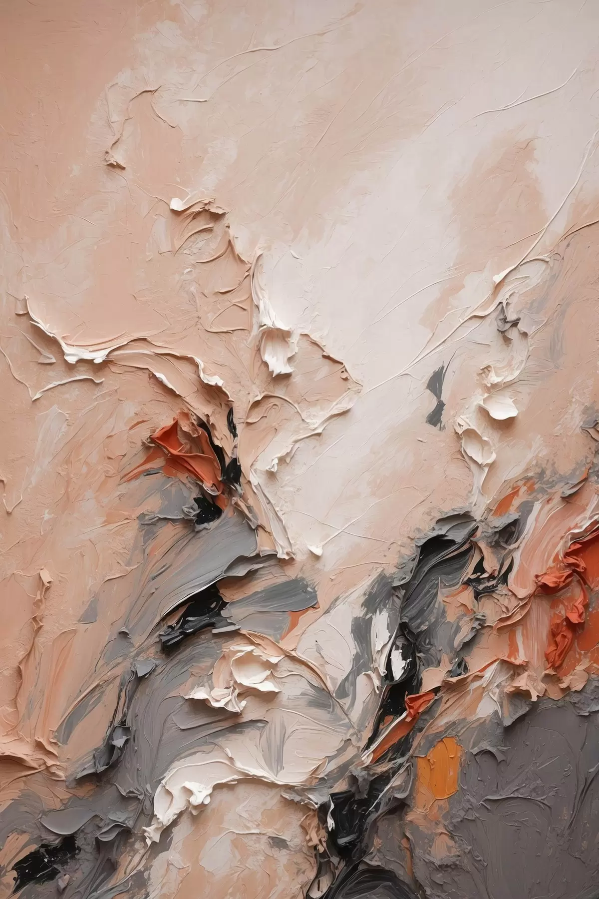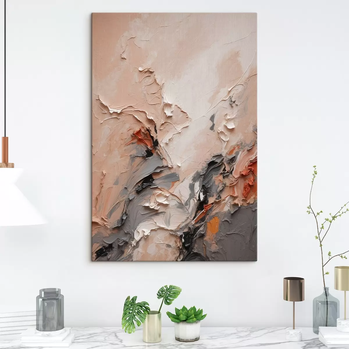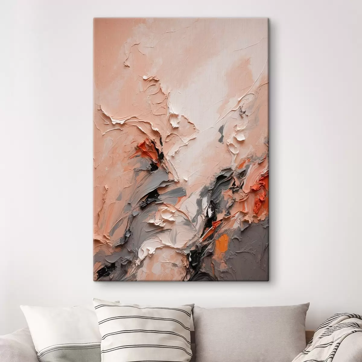 Wandbilder Abstrakt in pfirsichfarbenen Grautönen mit strukturierten Strichen s44873
