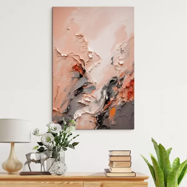 Wandbilder Abstrakt in pfirsichfarbenen Grautönen mit strukturierten Strichen Art. s44873