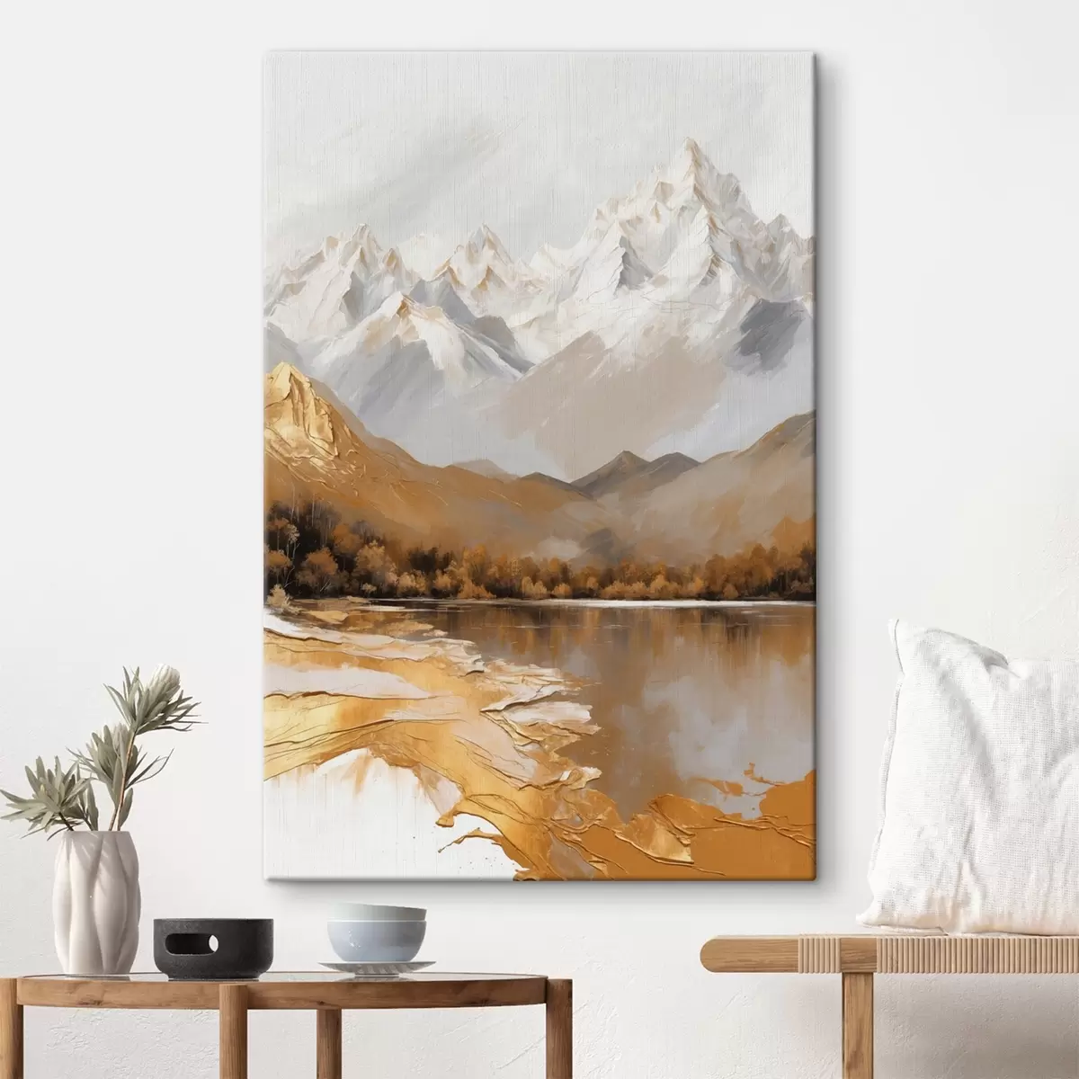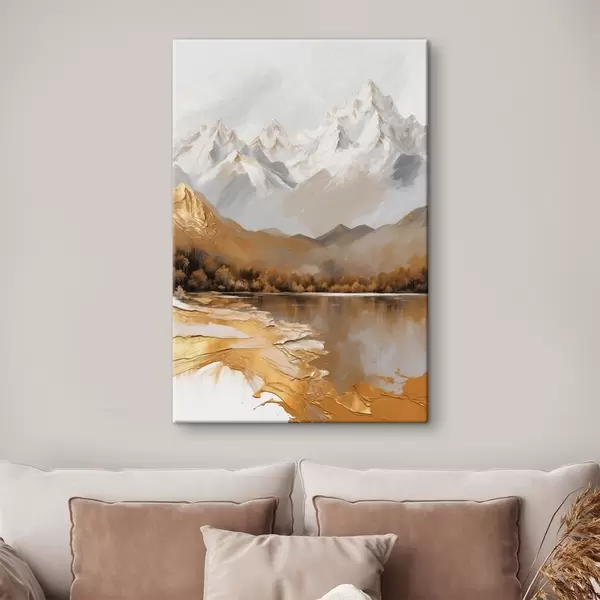 Wandbilder Berglandschaft mit einem See in warmen Farben Art. s44877