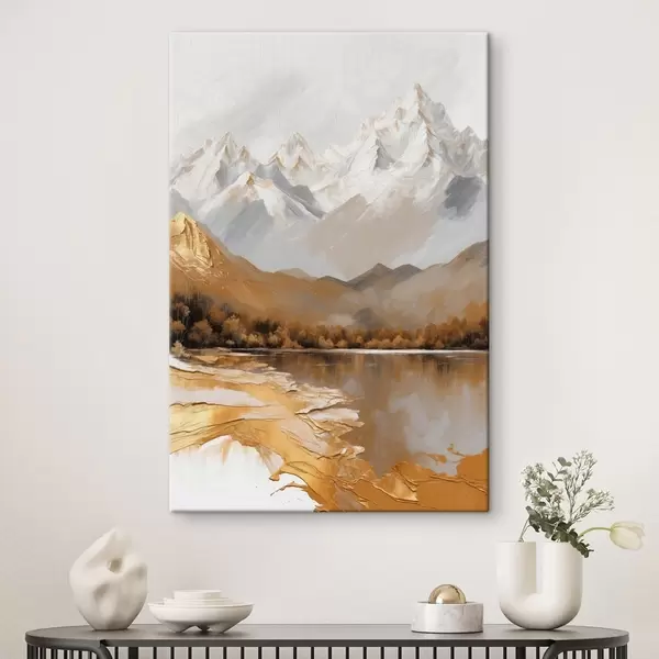 Wandbilder Berglandschaft mit einem See in warmen Farben Art. s44877