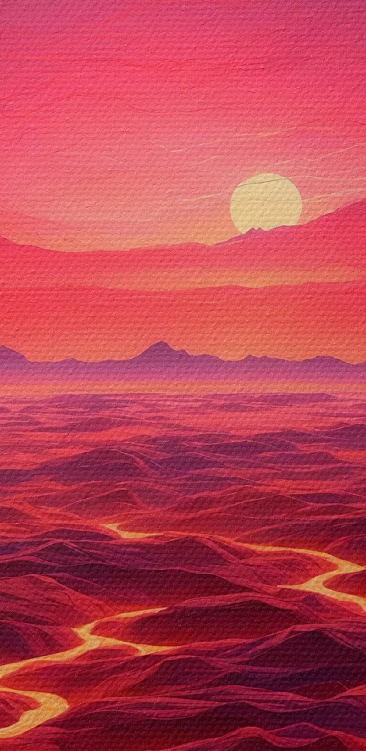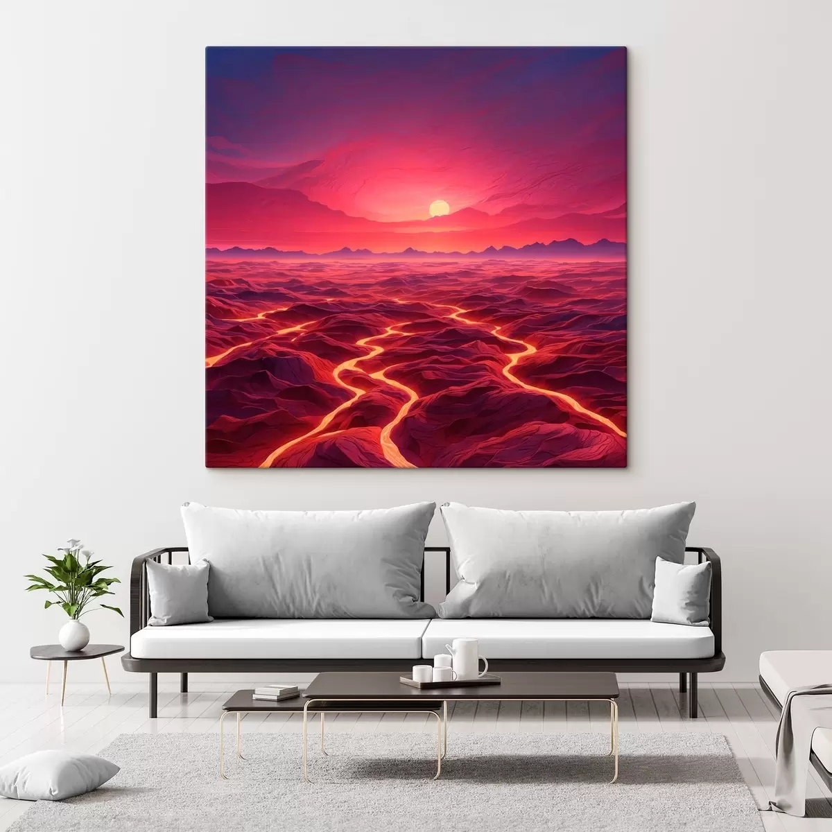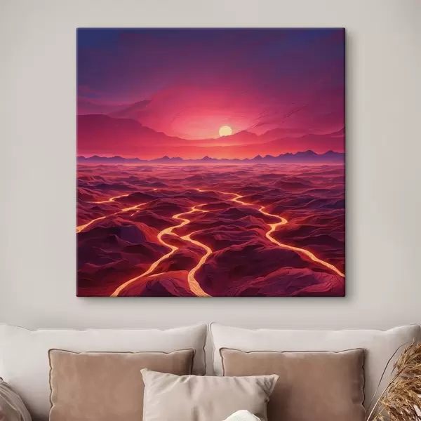 Wandbilder Heiße Landschaft mit Lavaströmen unter einem roten Himmel s44886