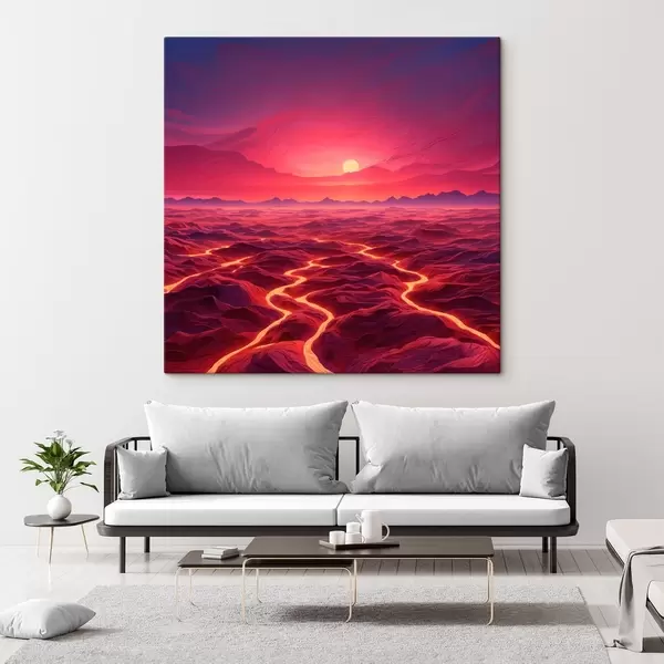 Wandbilder Heiße Landschaft mit Lavaströmen unter einem roten Himmel Art. s44886