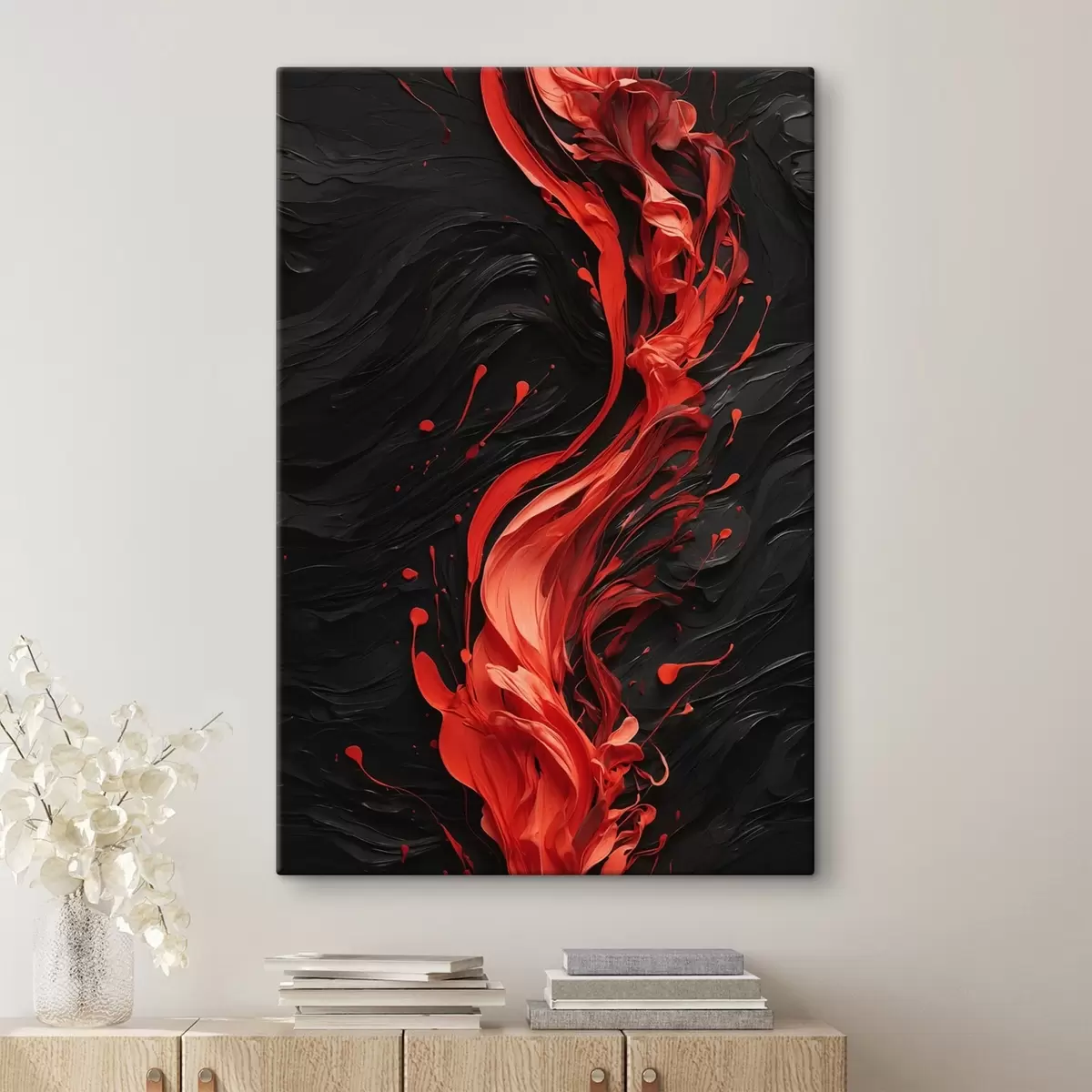 Wandbilder Roter Farbstrahl auf schwarzem abstraktem Hintergrund Art. s44889