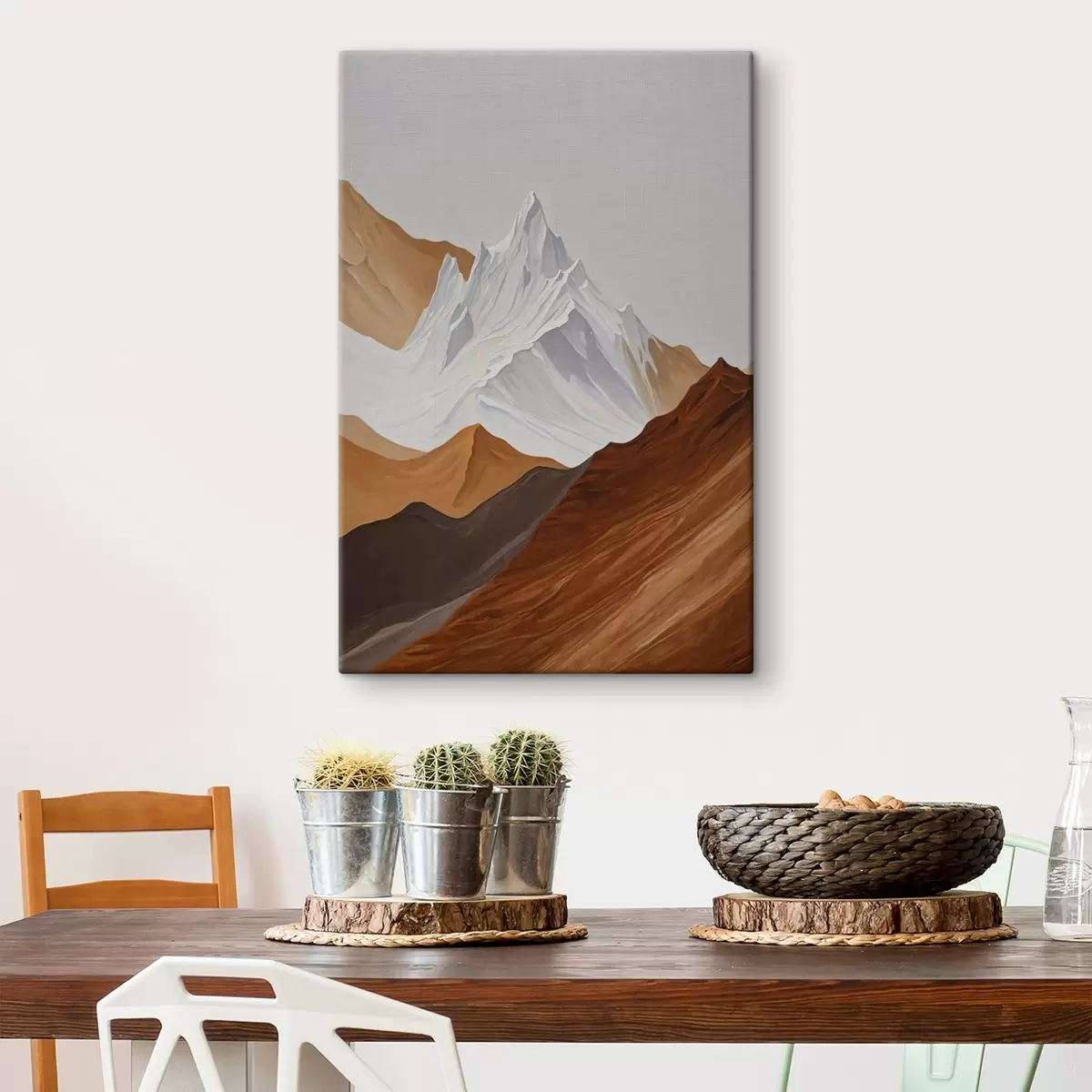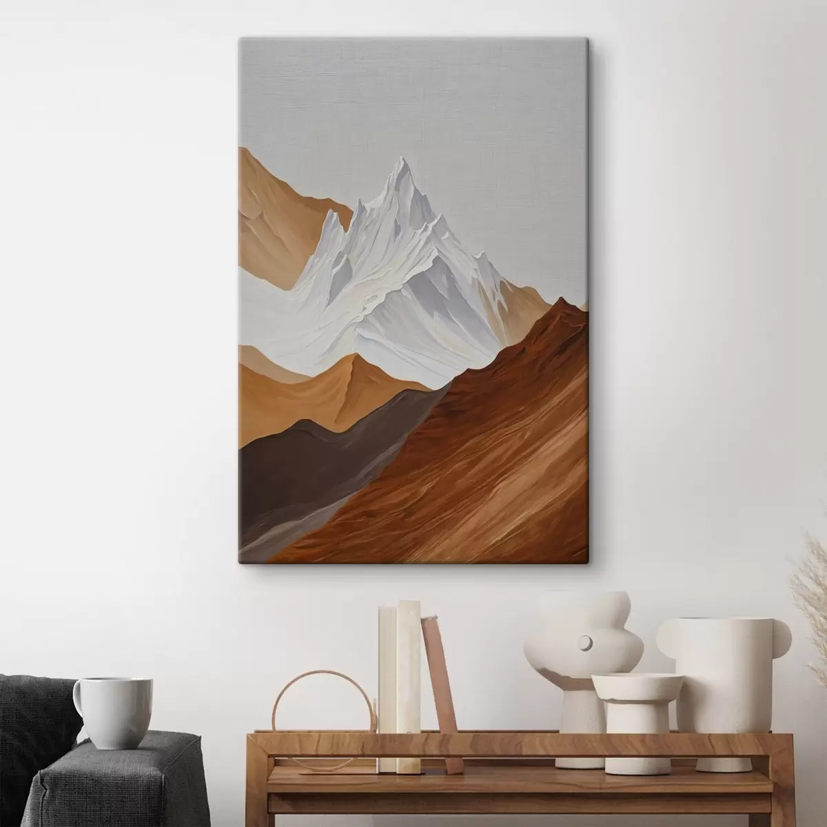 Wandbilder Geometrische Berglandschaft in Braun- und Weißtönen Art. s44896