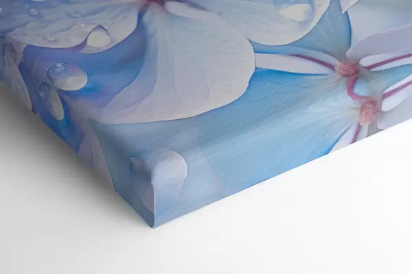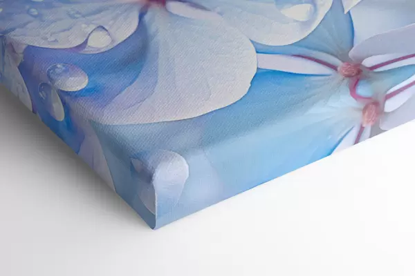 Wandbilder Hortensienblüten mit Wassertropfen auf den zarten Blütenblättern, sanfte Pastellfarben, hellblaue und rosa Töne Art. s44929