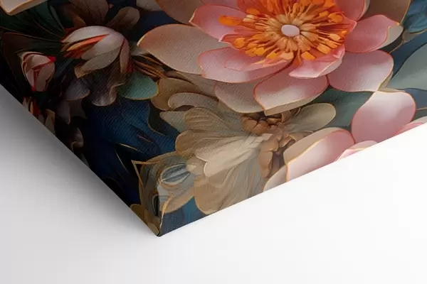 Wandbilder Rosa-orangefarbene Lotosblumen im 3D-Zeichenstil Art. s44934