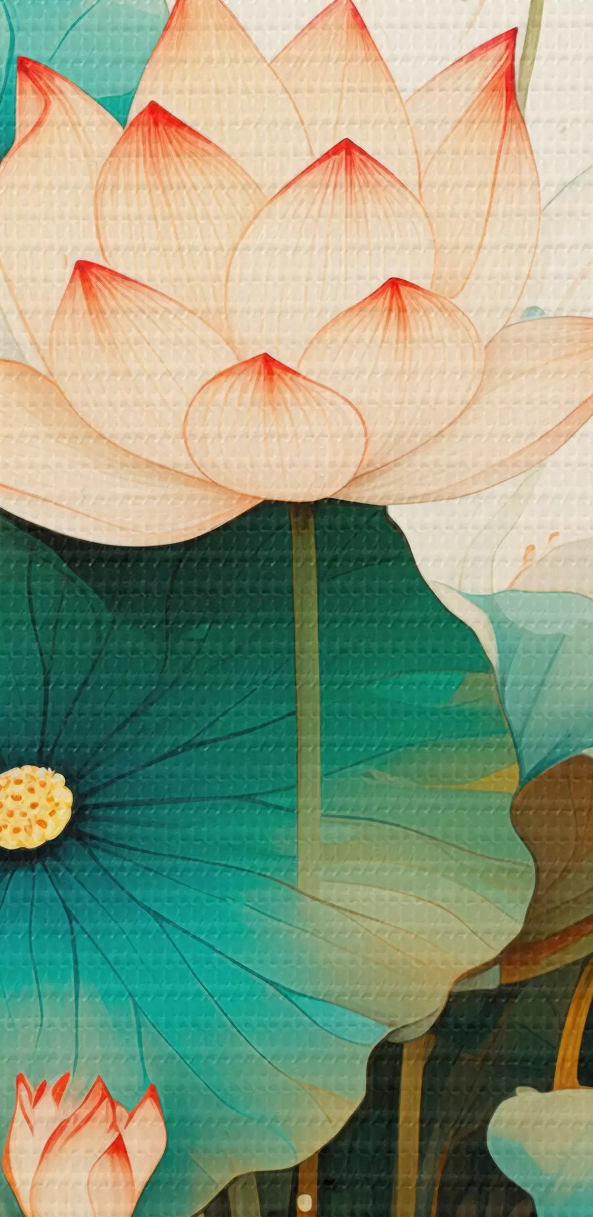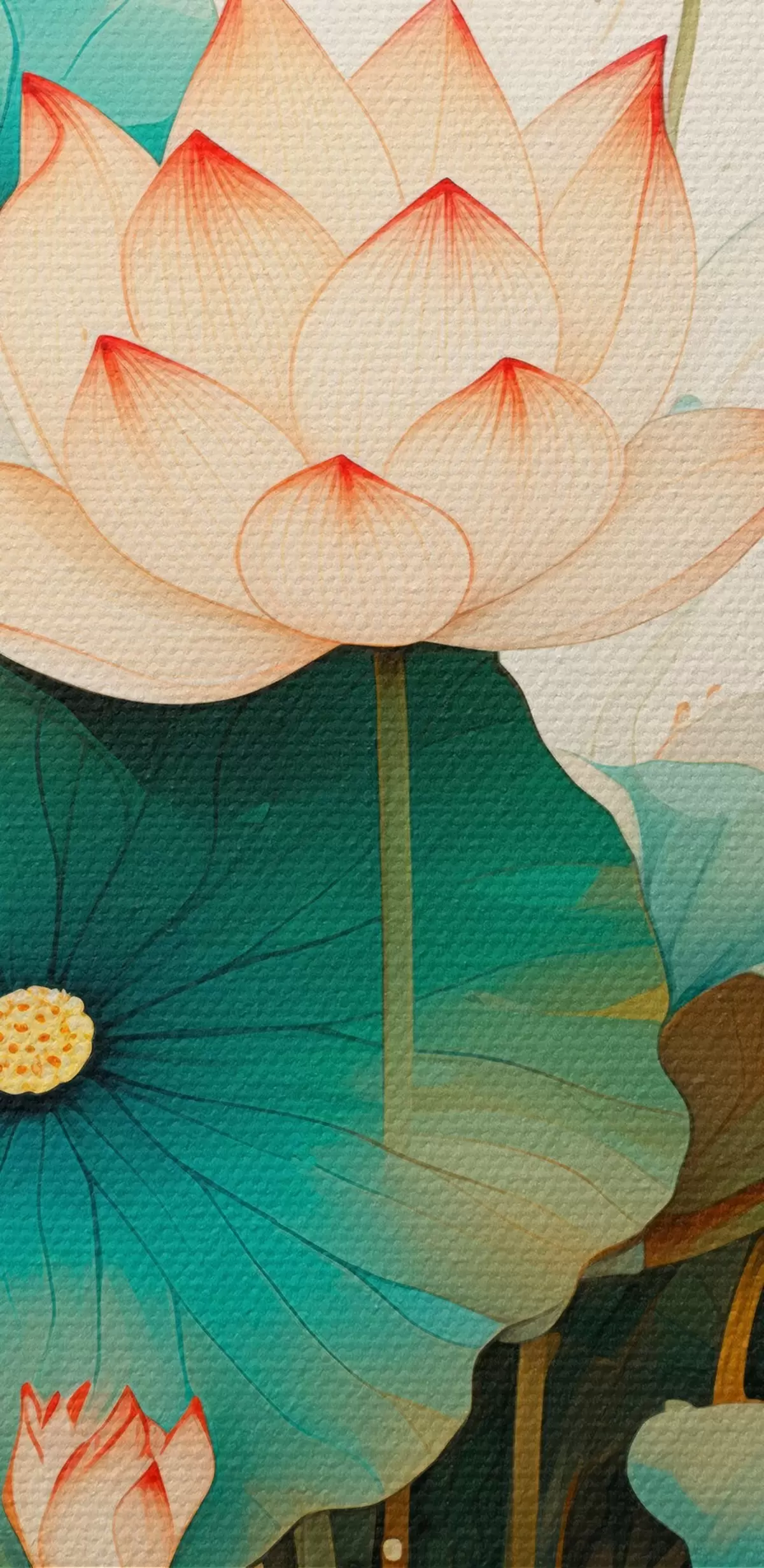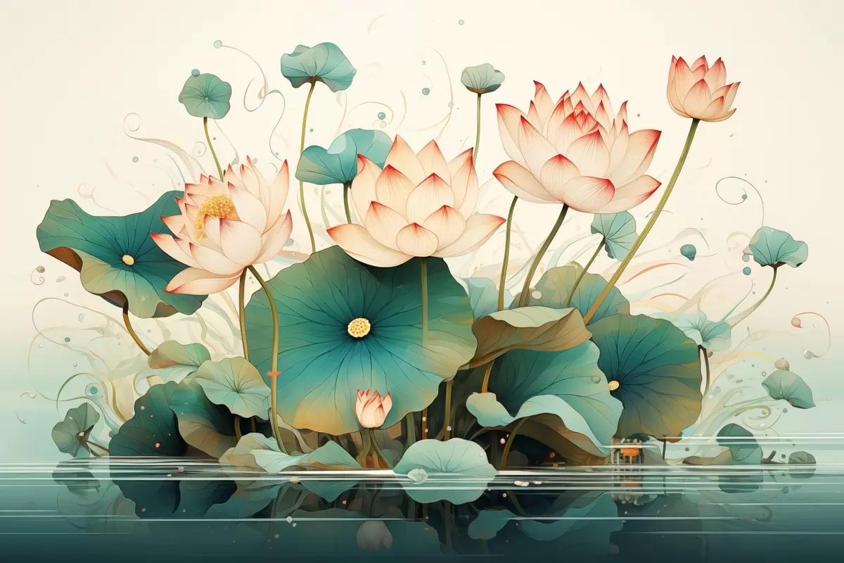 Wandbilder Lotosblumen mit großen Blättern im Illustrationsstil s44939