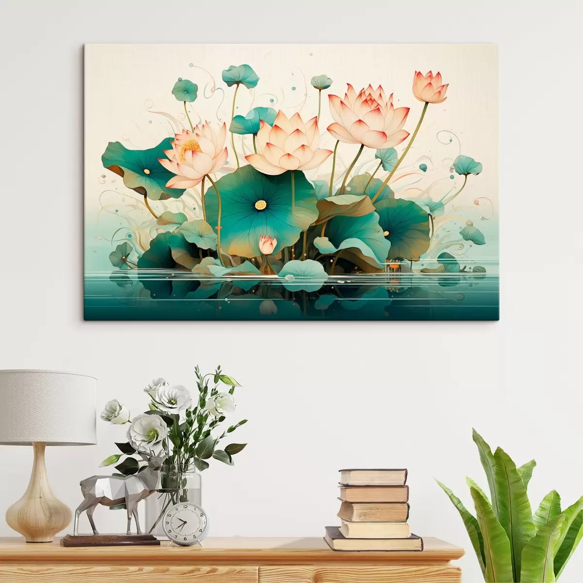 Wandbilder Lotosblumen mit großen Blättern im Illustrationsstil Art. s44939