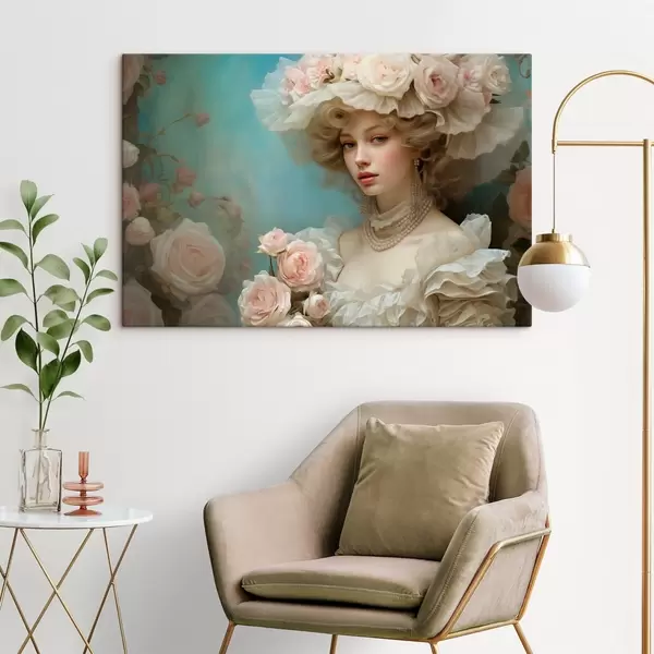 Wandbilder Elegante Dame in einem Hut mit Blumen im künstlerischen Stil Art. s44944