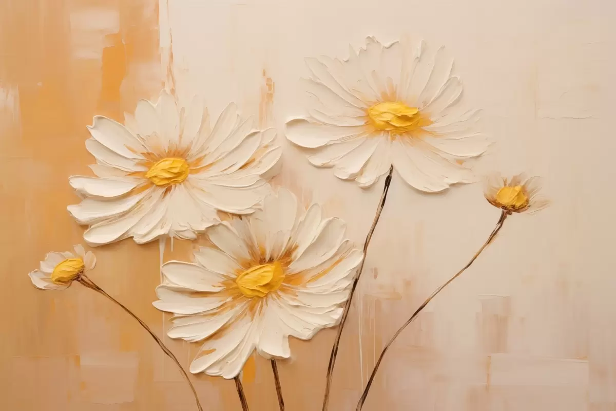Wandbilder Abstrakte Blumen auf einem orangefarbenen Hintergrund im Stil der Ölmalerei s44945