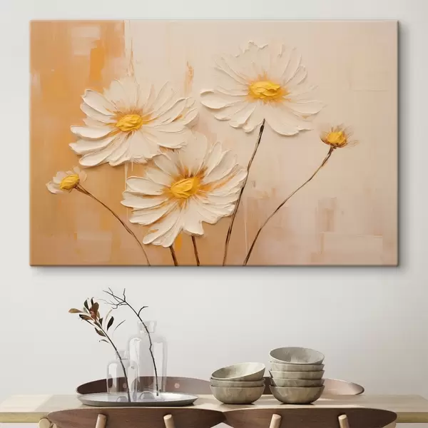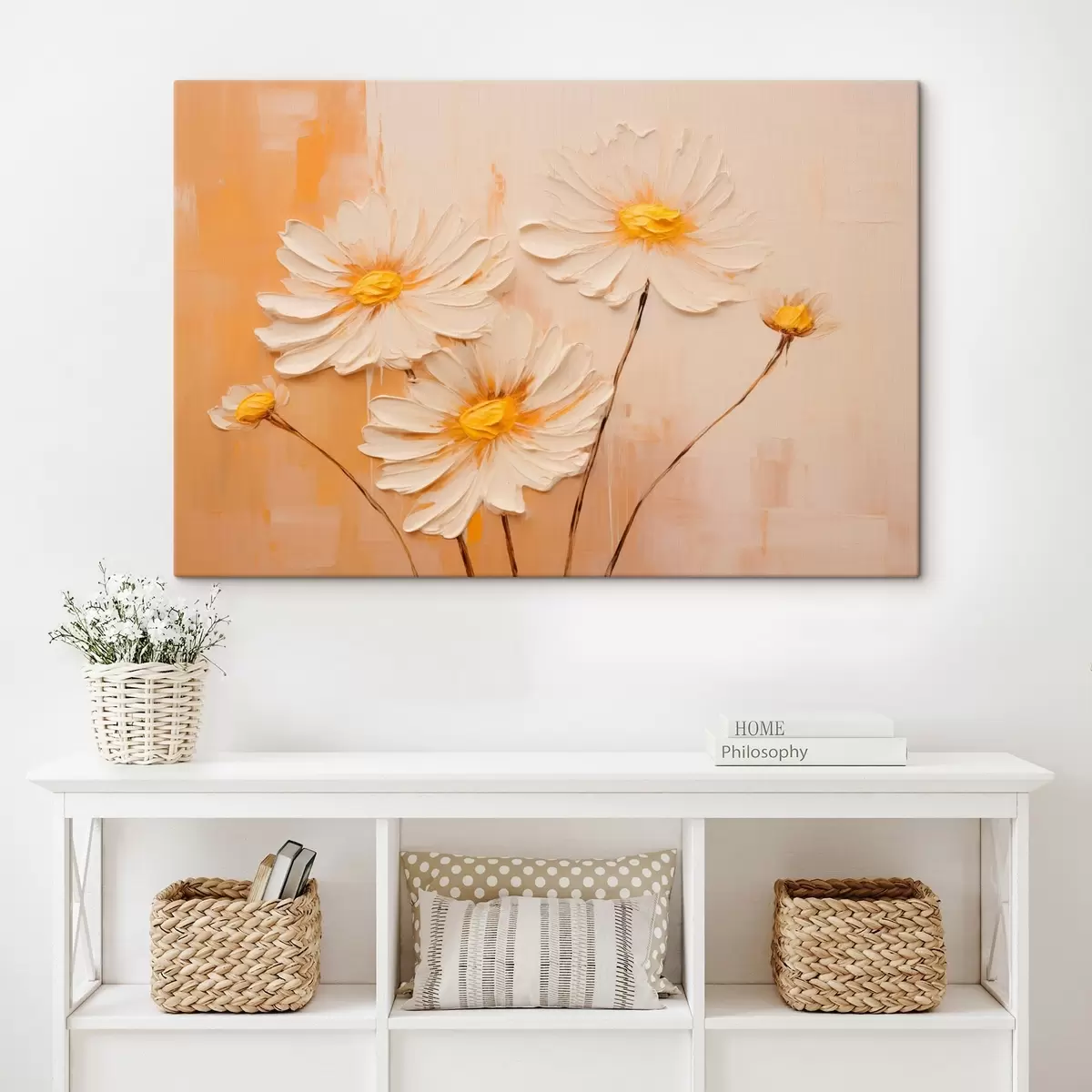 Wandbilder Abstrakte Blumen auf einem orangefarbenen Hintergrund im Stil der Ölmalerei Art. s44945