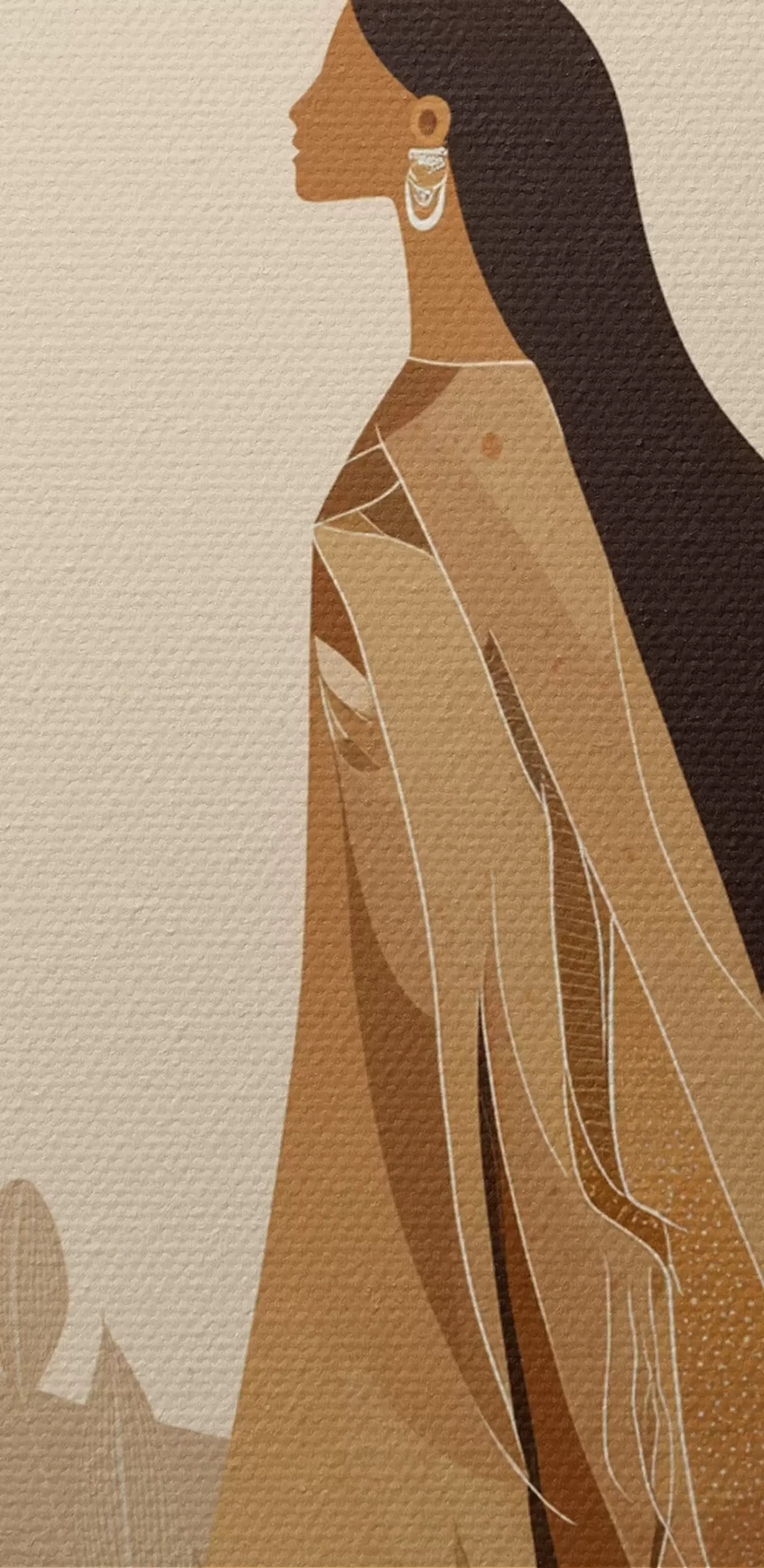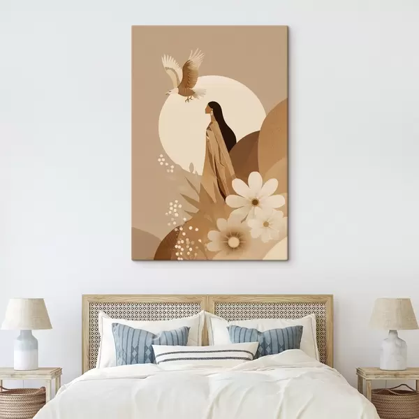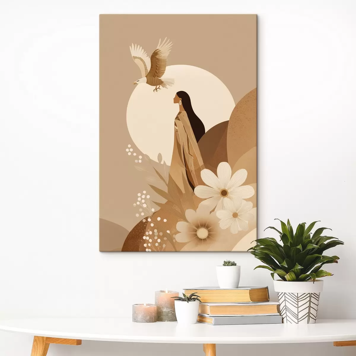 Wandbilder Abstraktion mit Frau und Adler in den Himmel, beige Farben Art. s44978