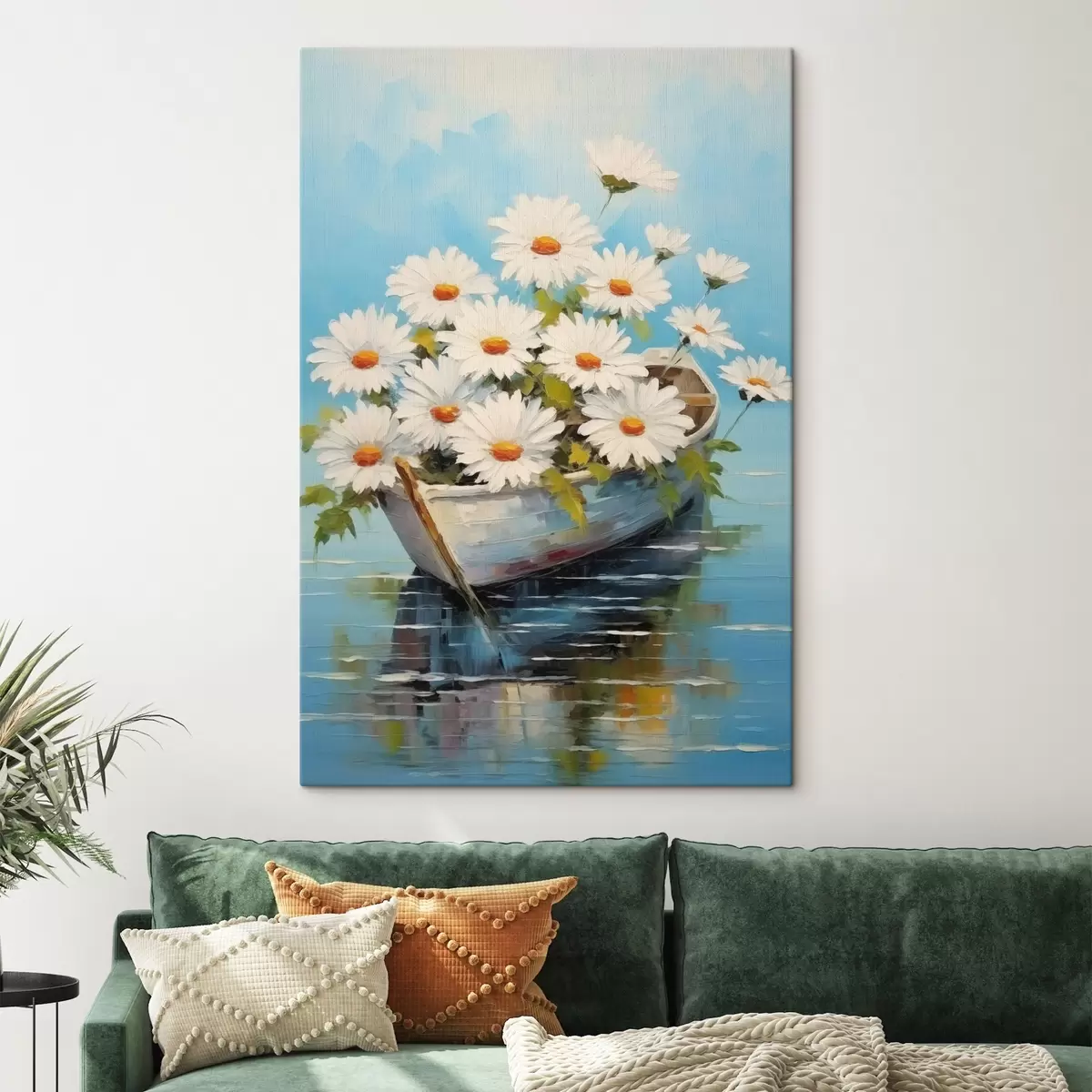 Wandbilder Gänseblümchen in einem Boot auf dem Wasser Art. s44987