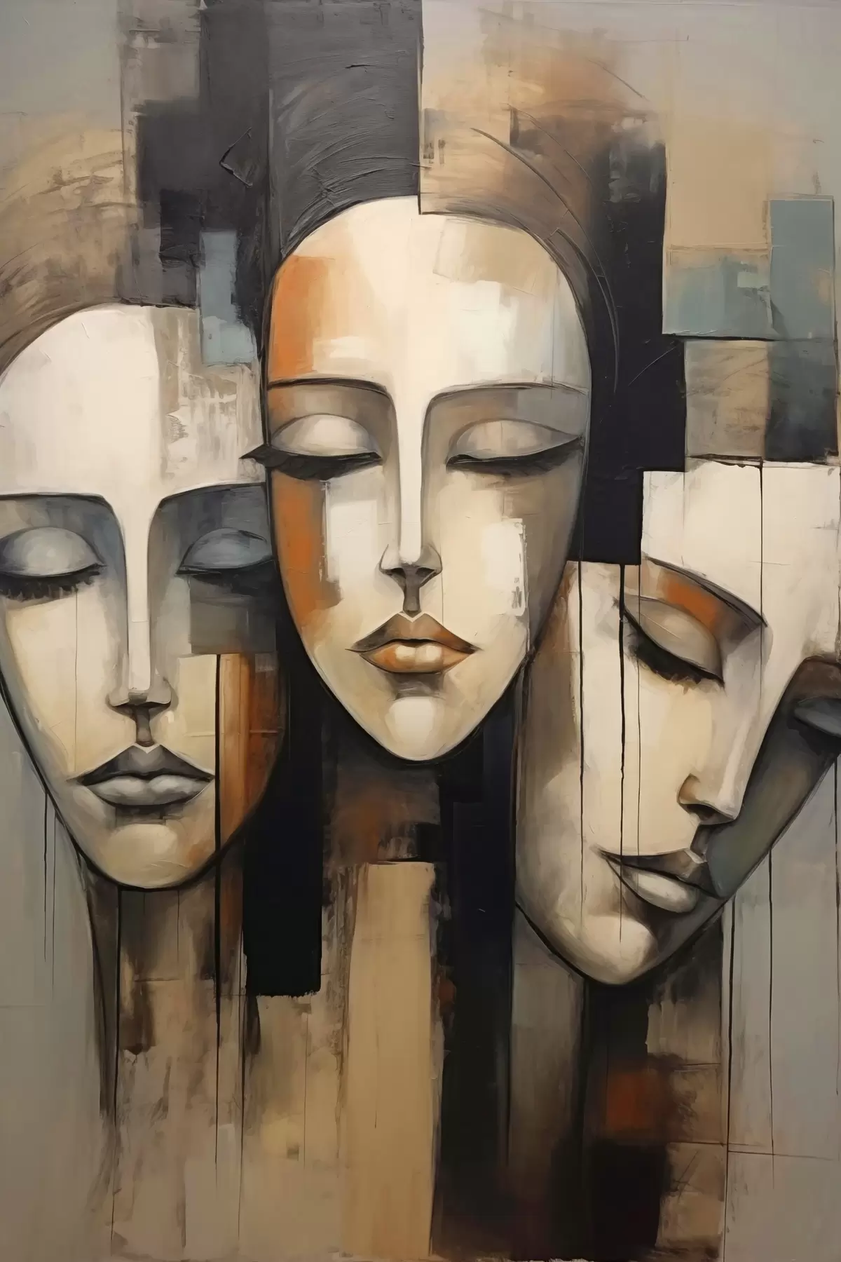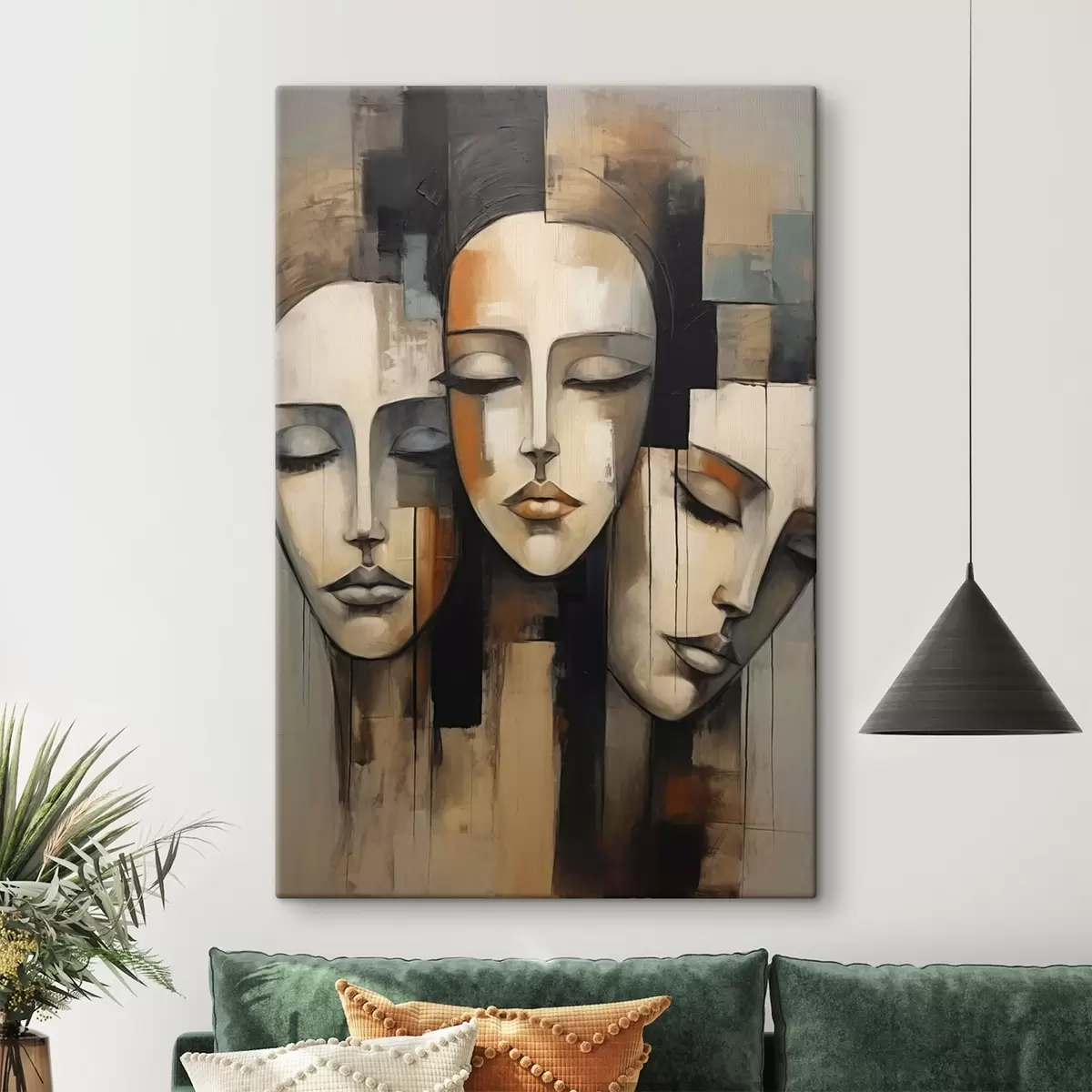 Wandbilder Drei weibliche Gesichter mit geschlossenen Augen im Stil des Kubismus Art. s45008