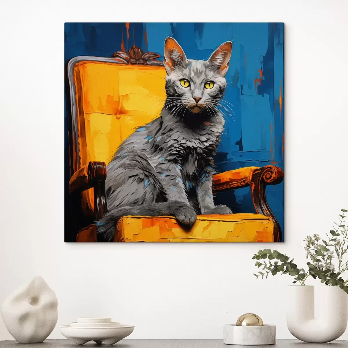 Wandbilder Künstlerische Katze Porträt auf einem blauen Hintergrund Art. s45030