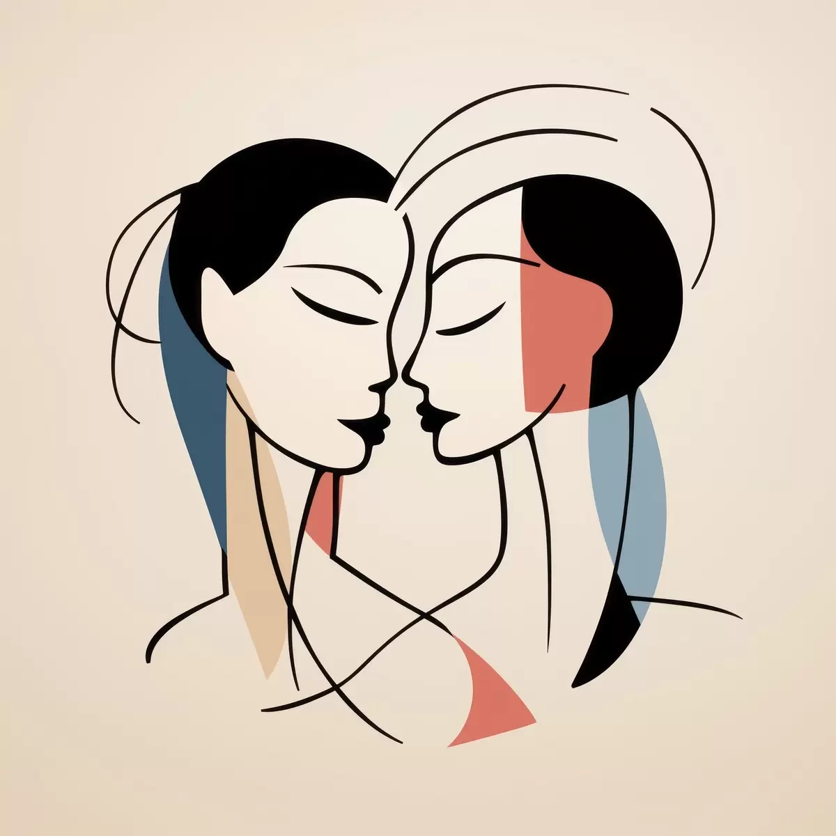 Wandbilder Zwei Gesichter im abstrakten Stil mit bunten Elementen Art. s45037