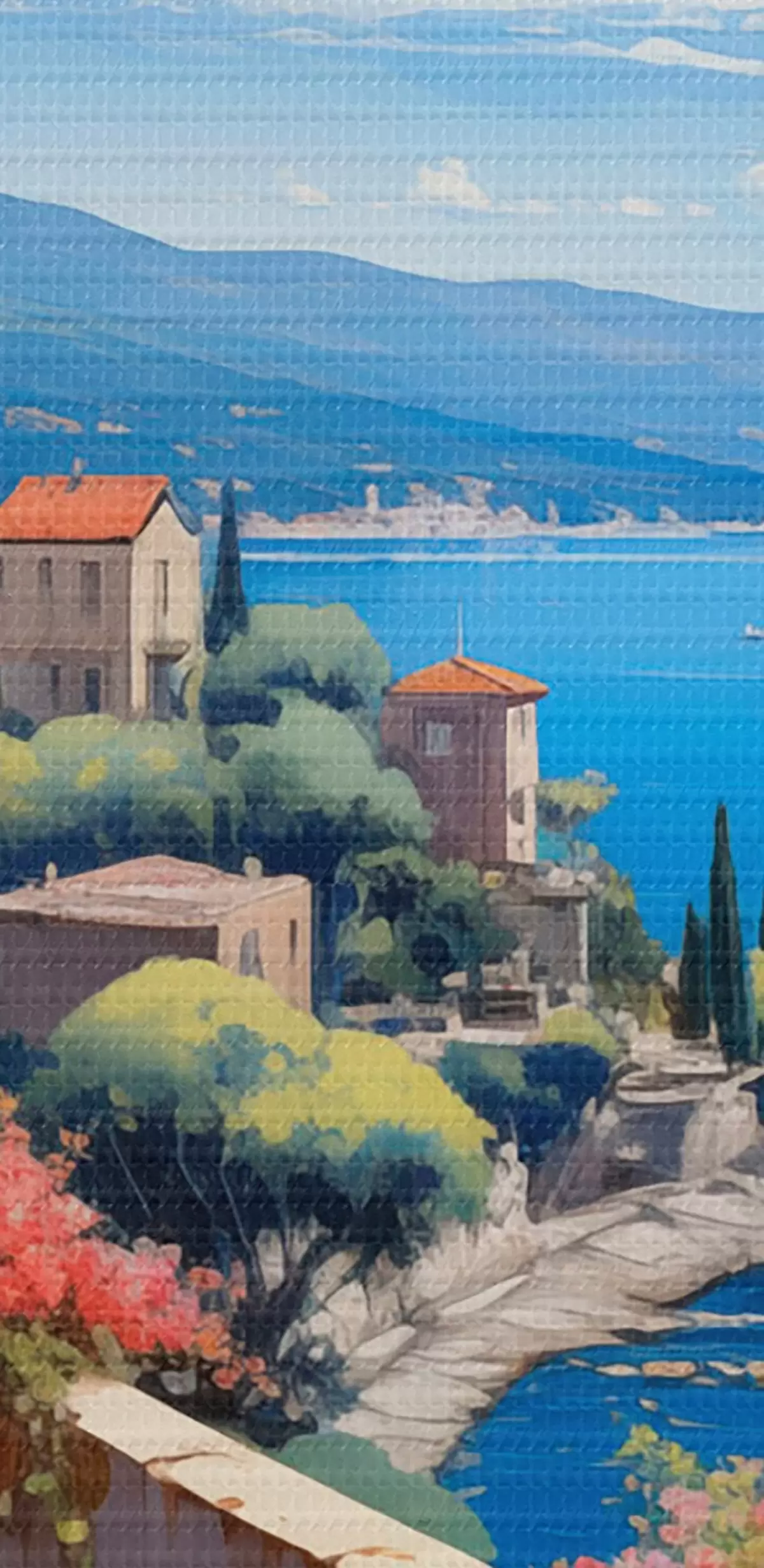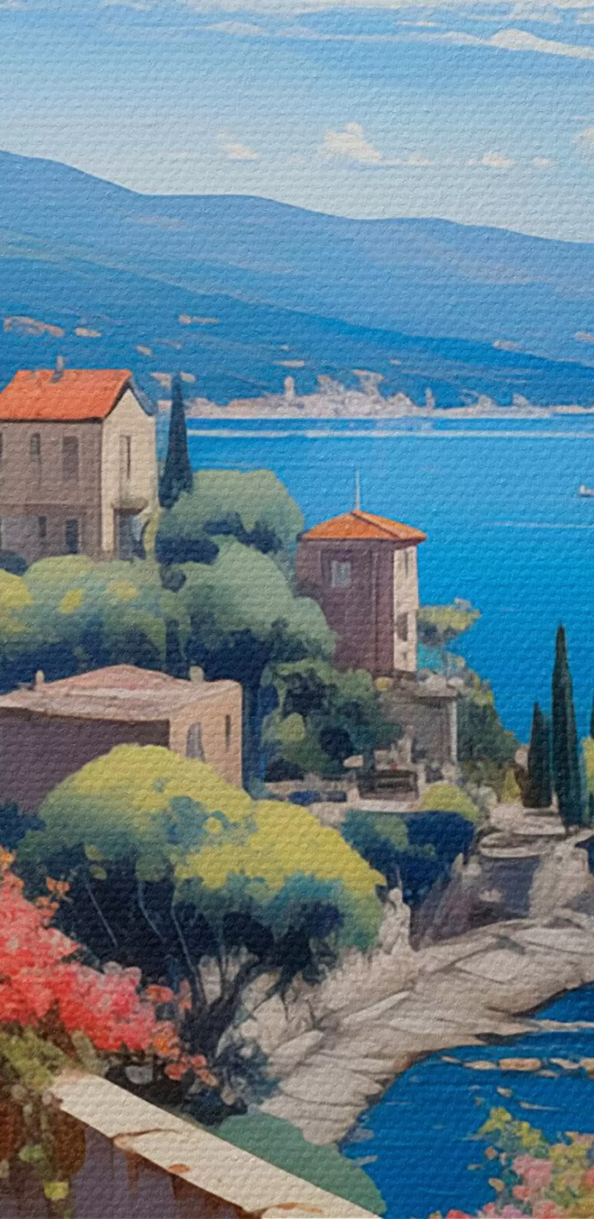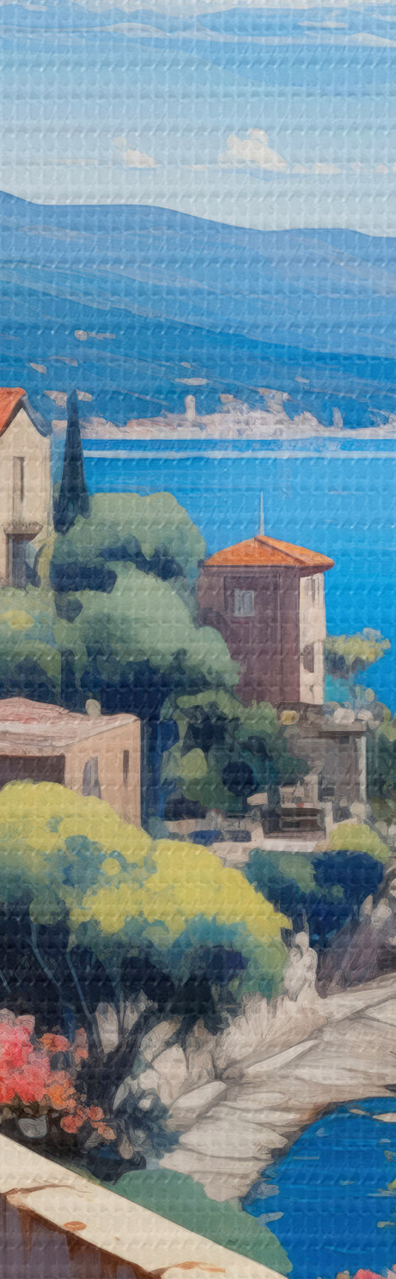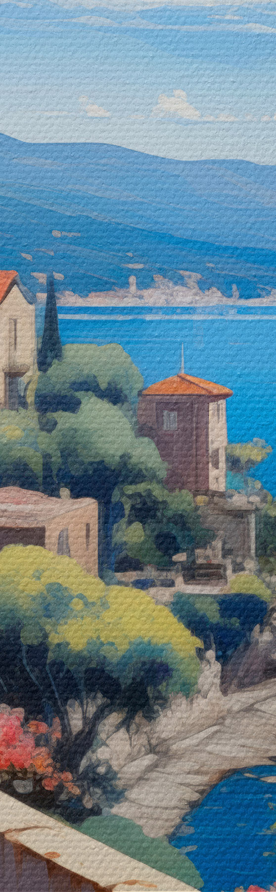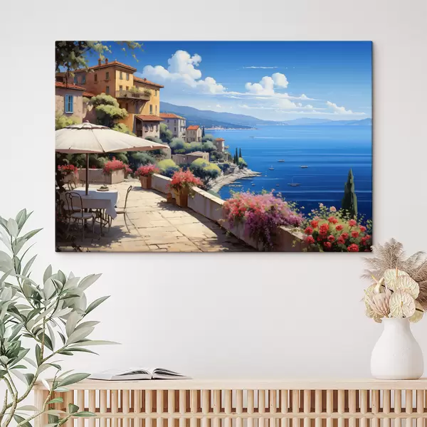 Wandbilder Mediterrane Landschaft mit blühender Terrasse im künstlerischen Stil s45053