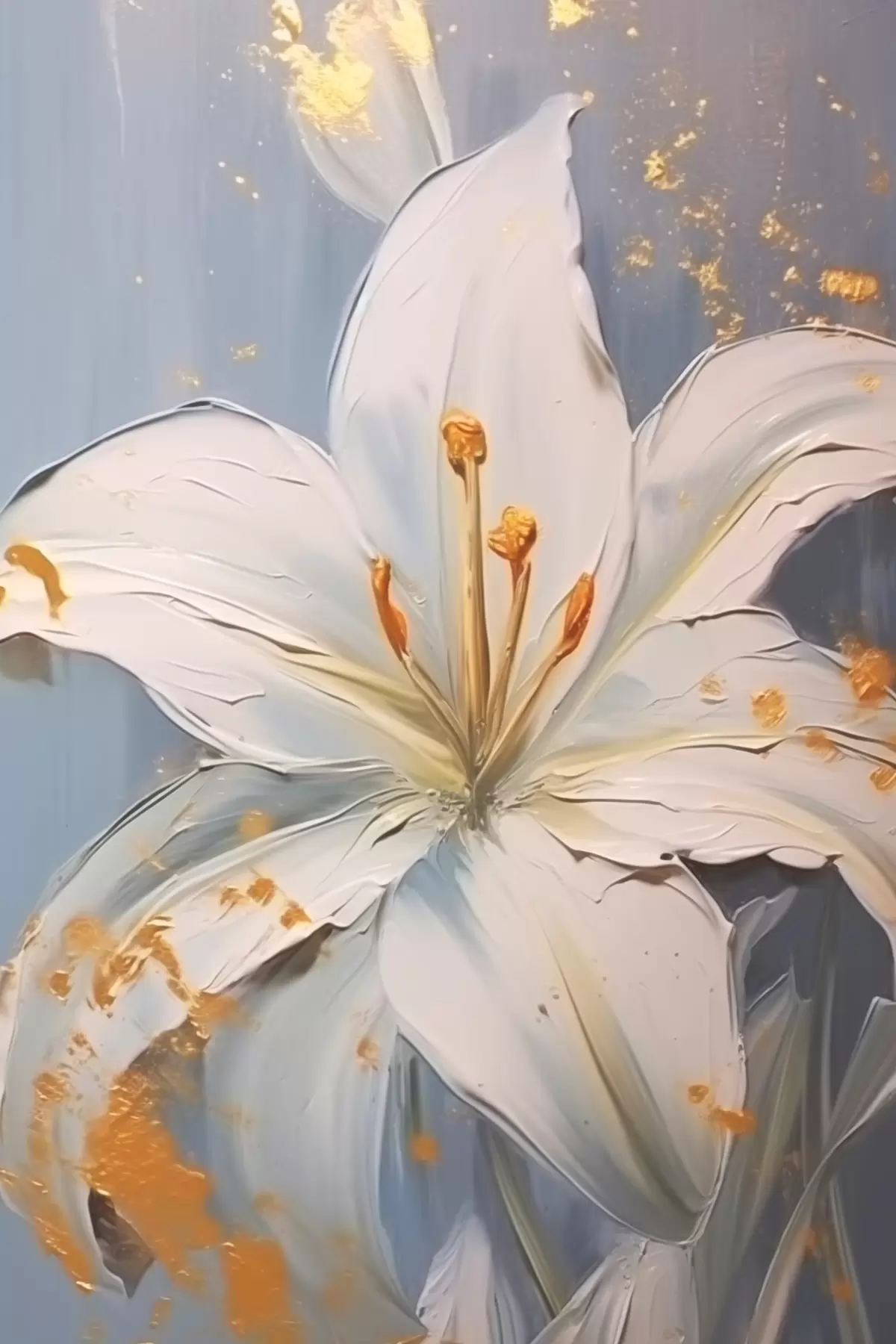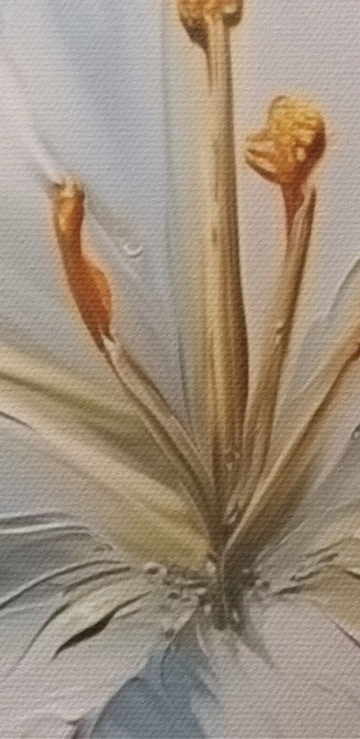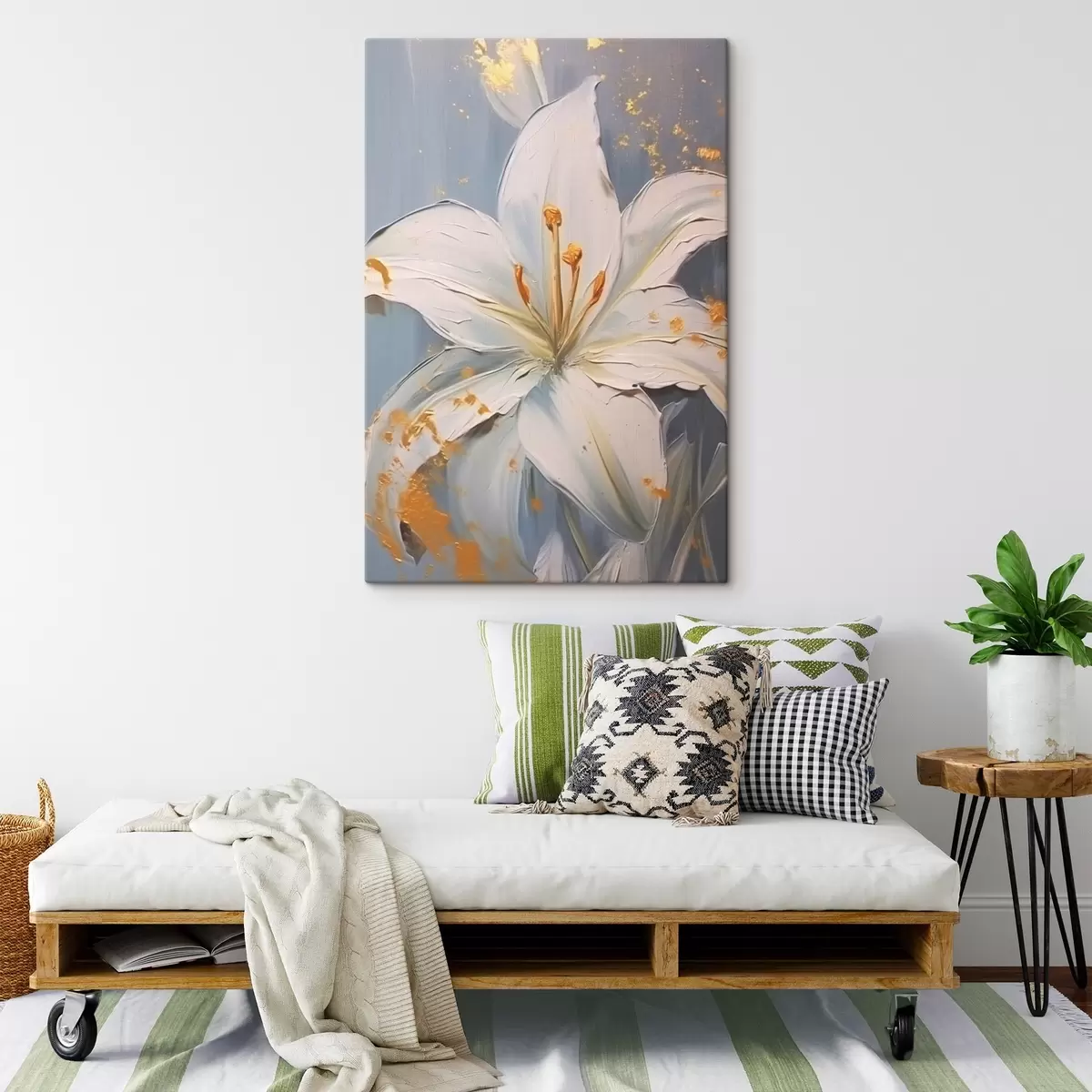 Wandbilder Weiße Lilie mit gelben Akzenten auf blauem Hintergrund Art. s45078