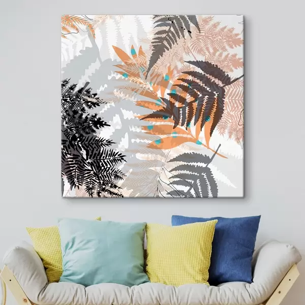 Wandbilder dschungel-Laub, moderner Stil, Linienkunst, geschichtete Pflanzen, gedeckte Farben, Natur Art. s45102