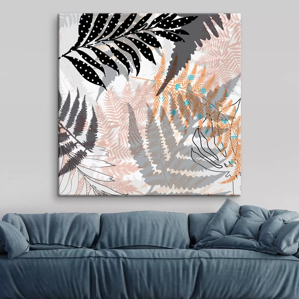 Wandbilder tropische Blätter, Grafik, Textur, beige und schwarz, Silhouette, zeitgenössisch, Pflanze s45103