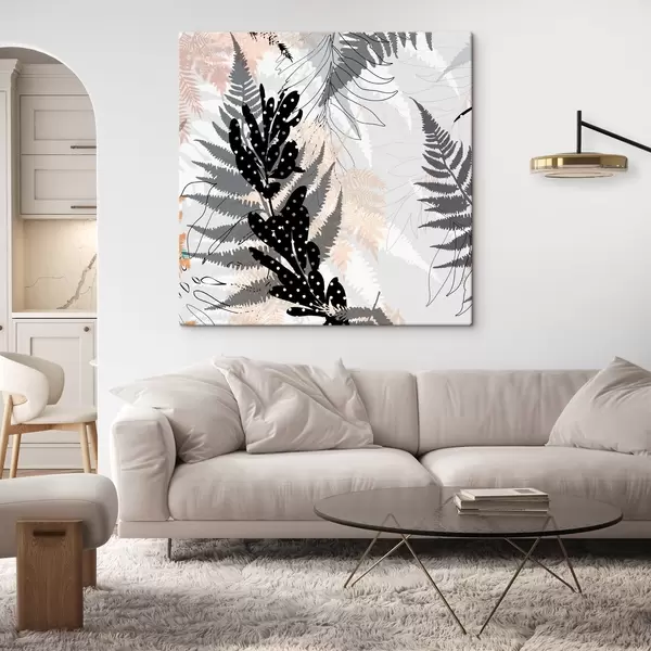 Wandbilder naturdruck, dekoratives Blattwerk, Dschungel-Mix, Farnformen, neutrale Farbpalette, Blattkunst Art. s45104