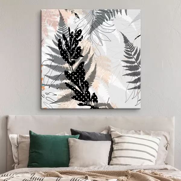 Wandbilder naturdruck, dekoratives Blattwerk, Dschungel-Mix, Farnformen, neutrale Farbpalette, Blattkunst Art. s45104