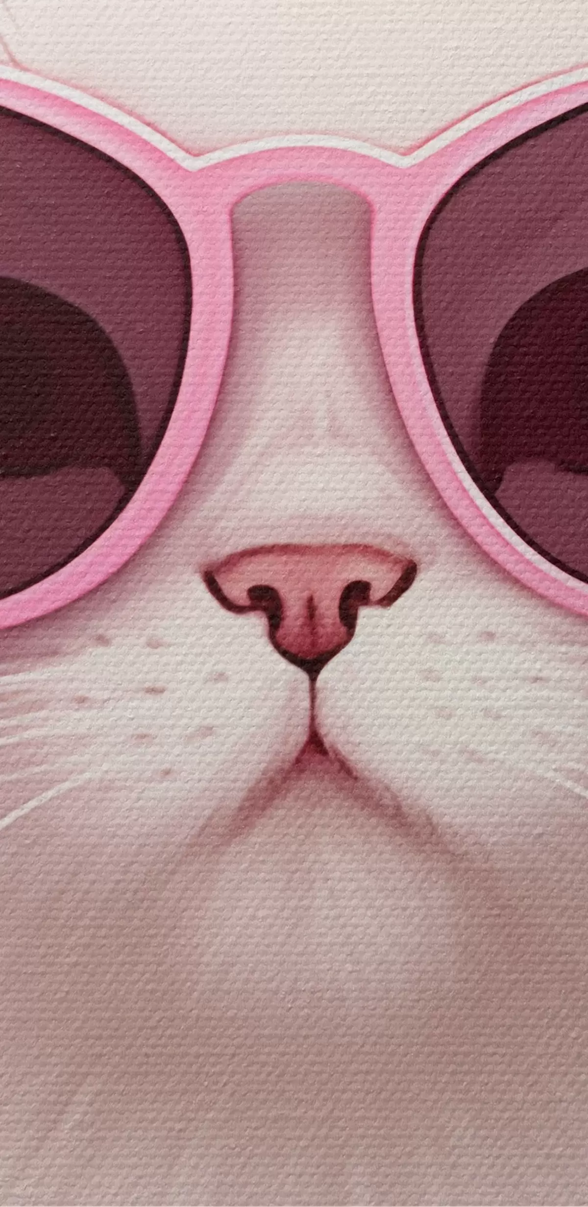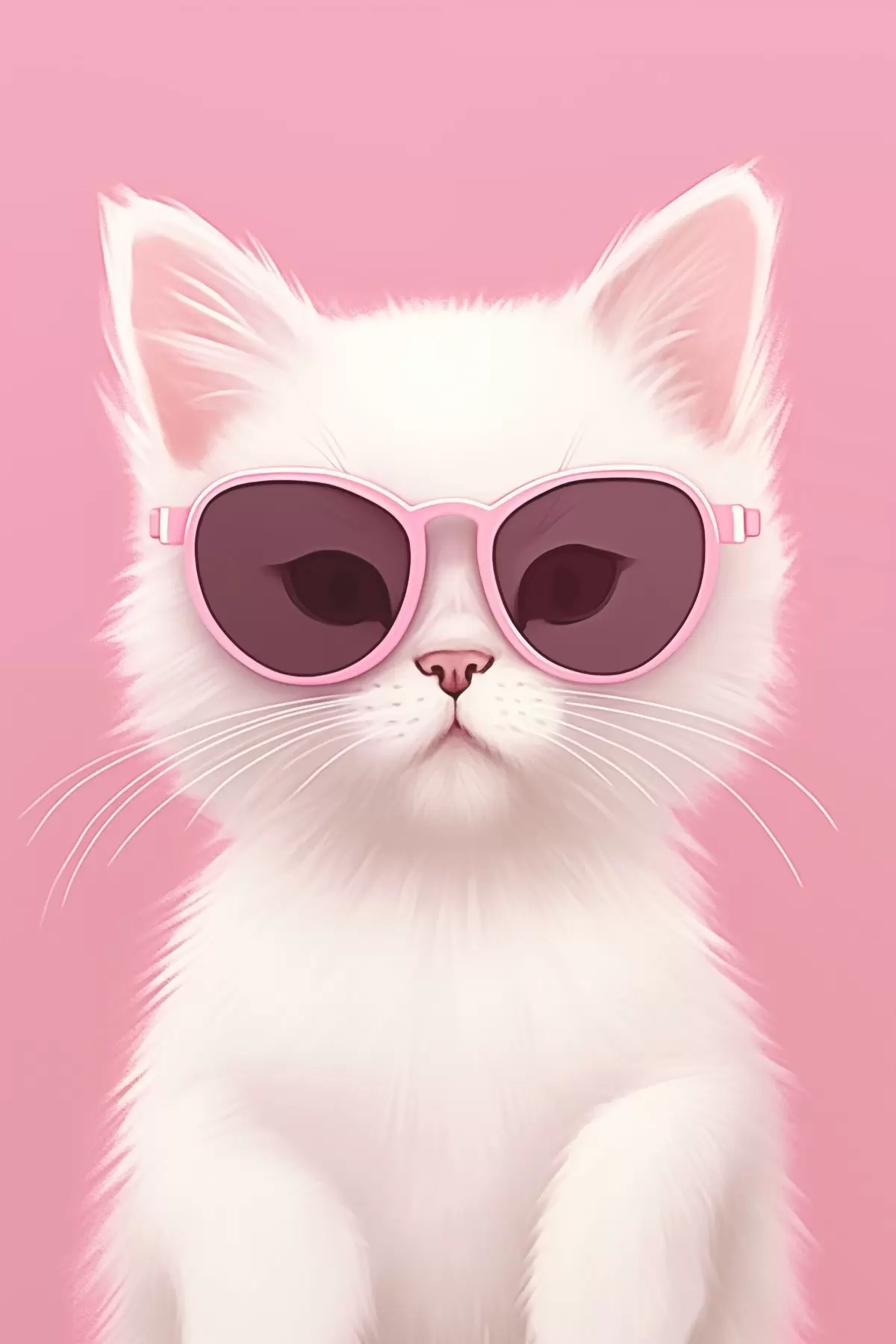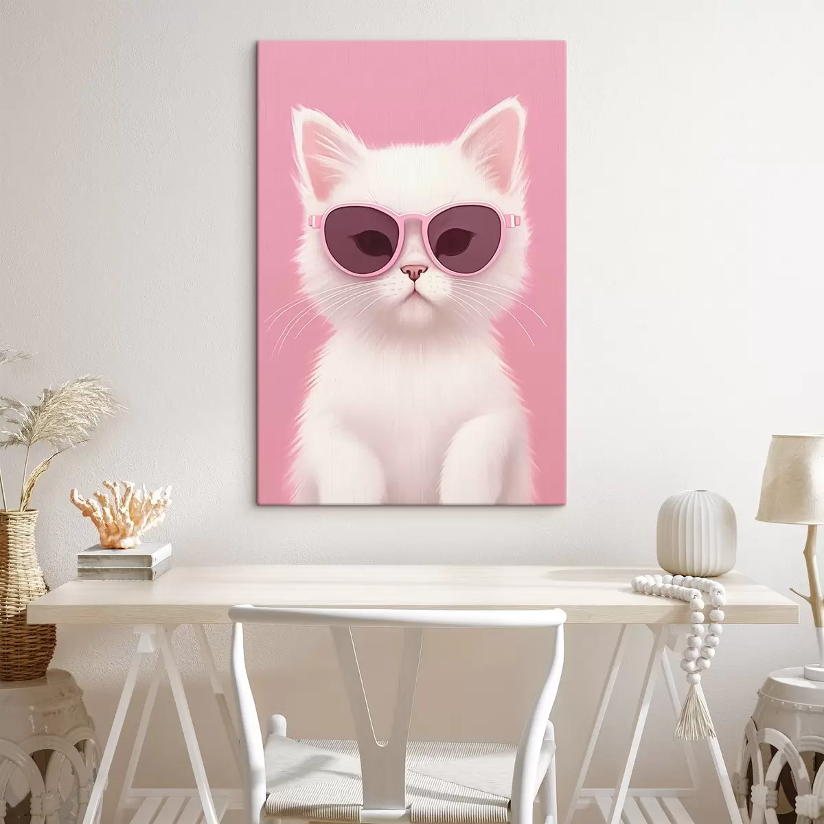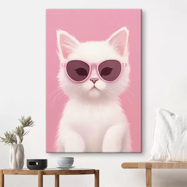 Wandbilder Weiße Katze mit rosa Brille Art. s45145