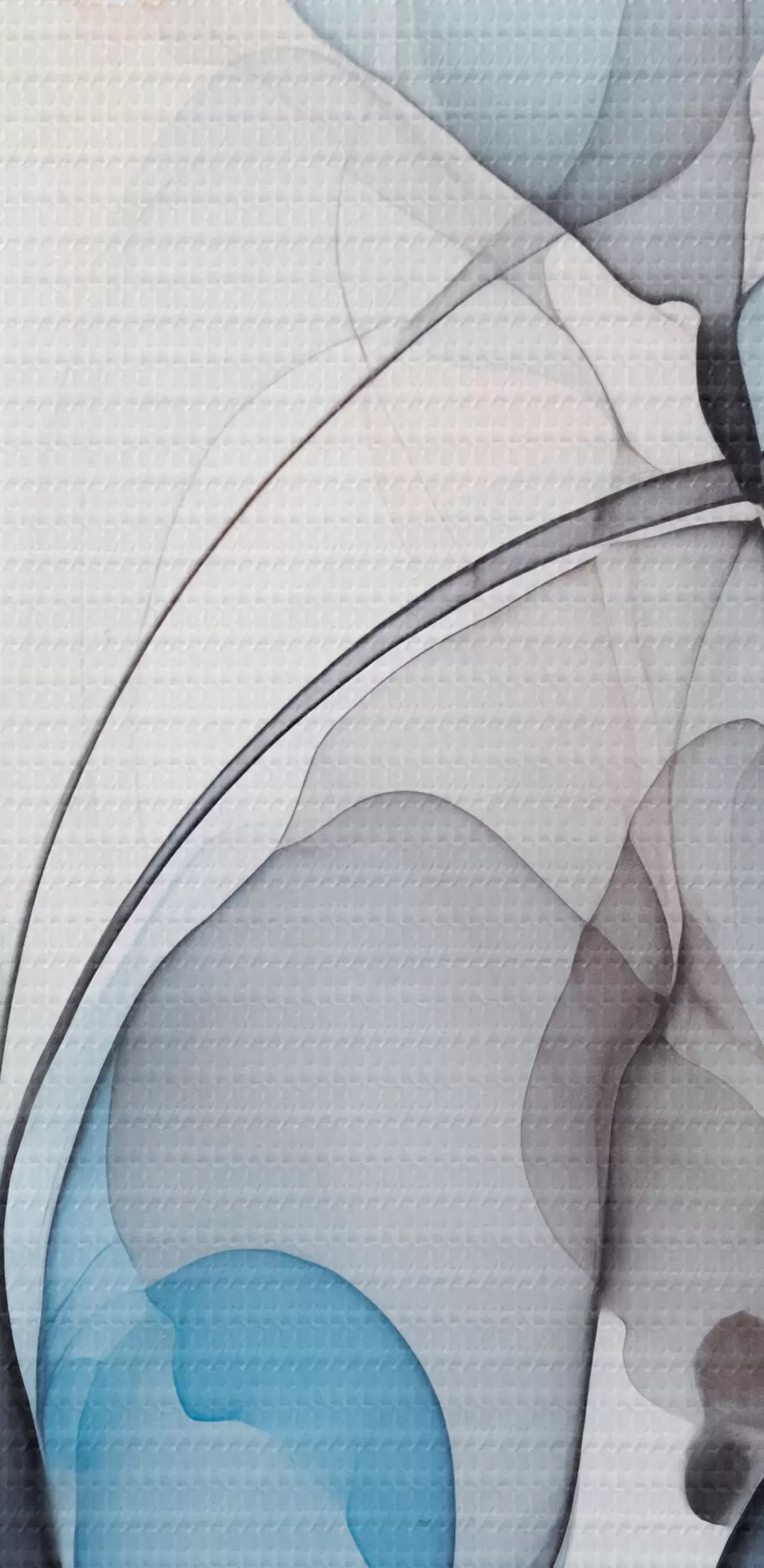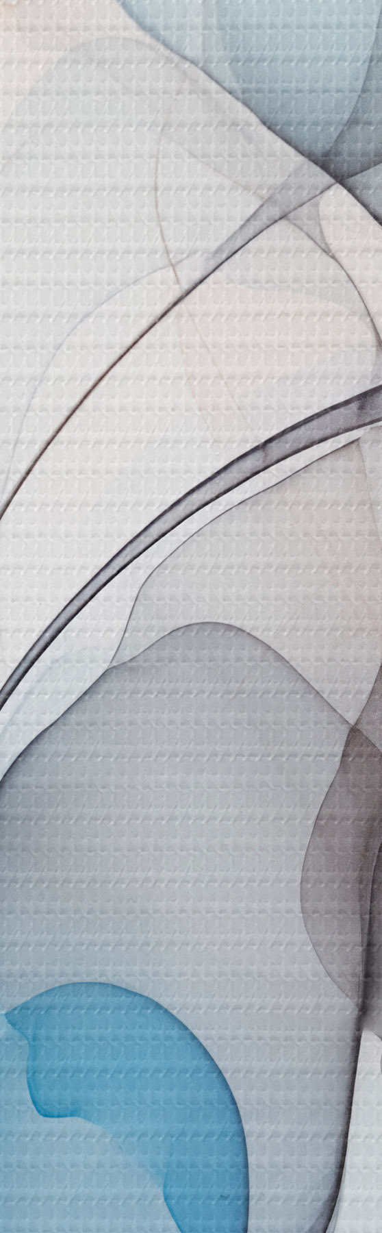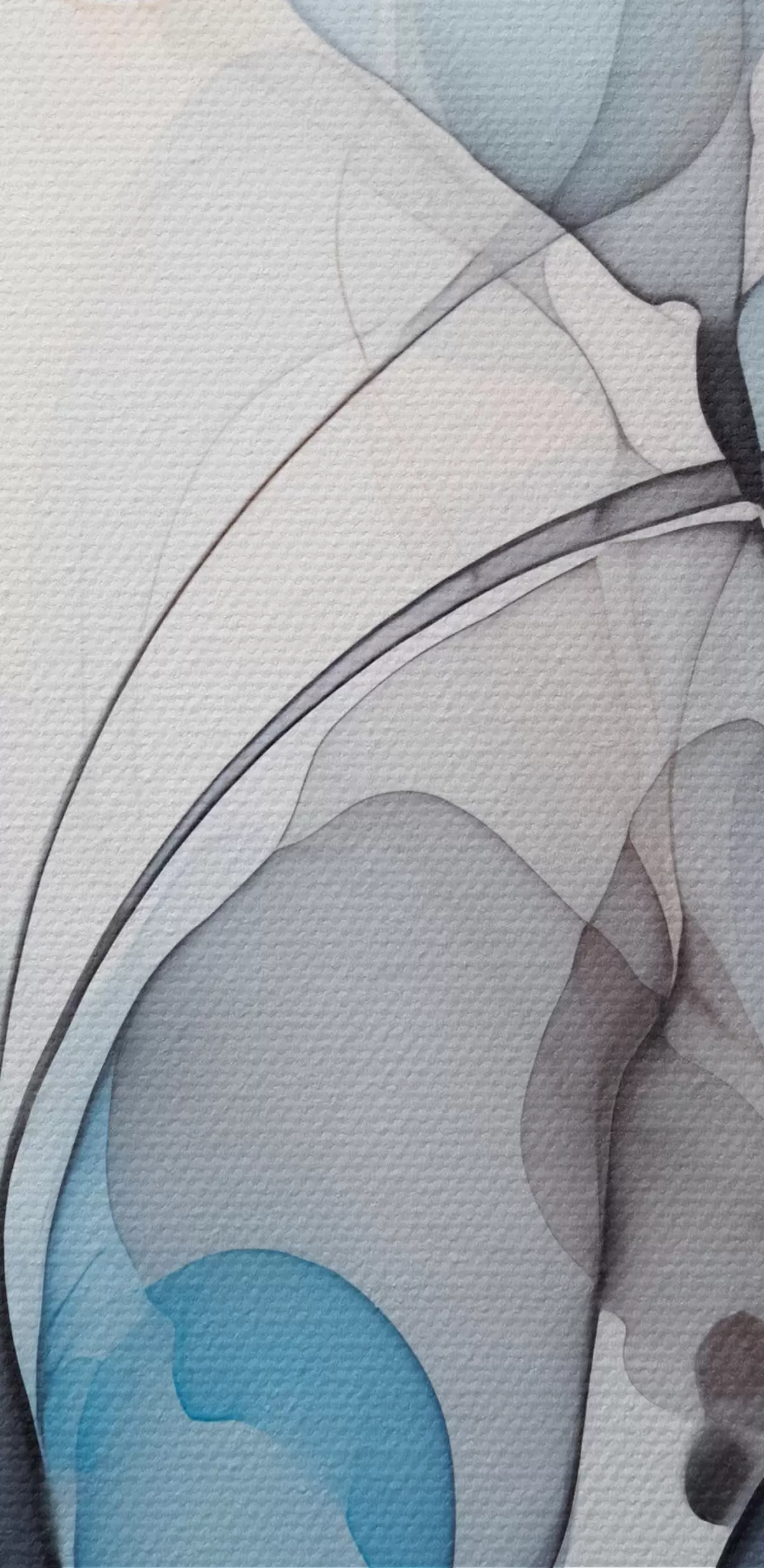 Wandbilder Abstrakte Komposition mit fließenden Linien und durchscheinenden Blütenblättern in blauen, weißen und beigen Farbtönen, Alkoholtintenimitation s45177