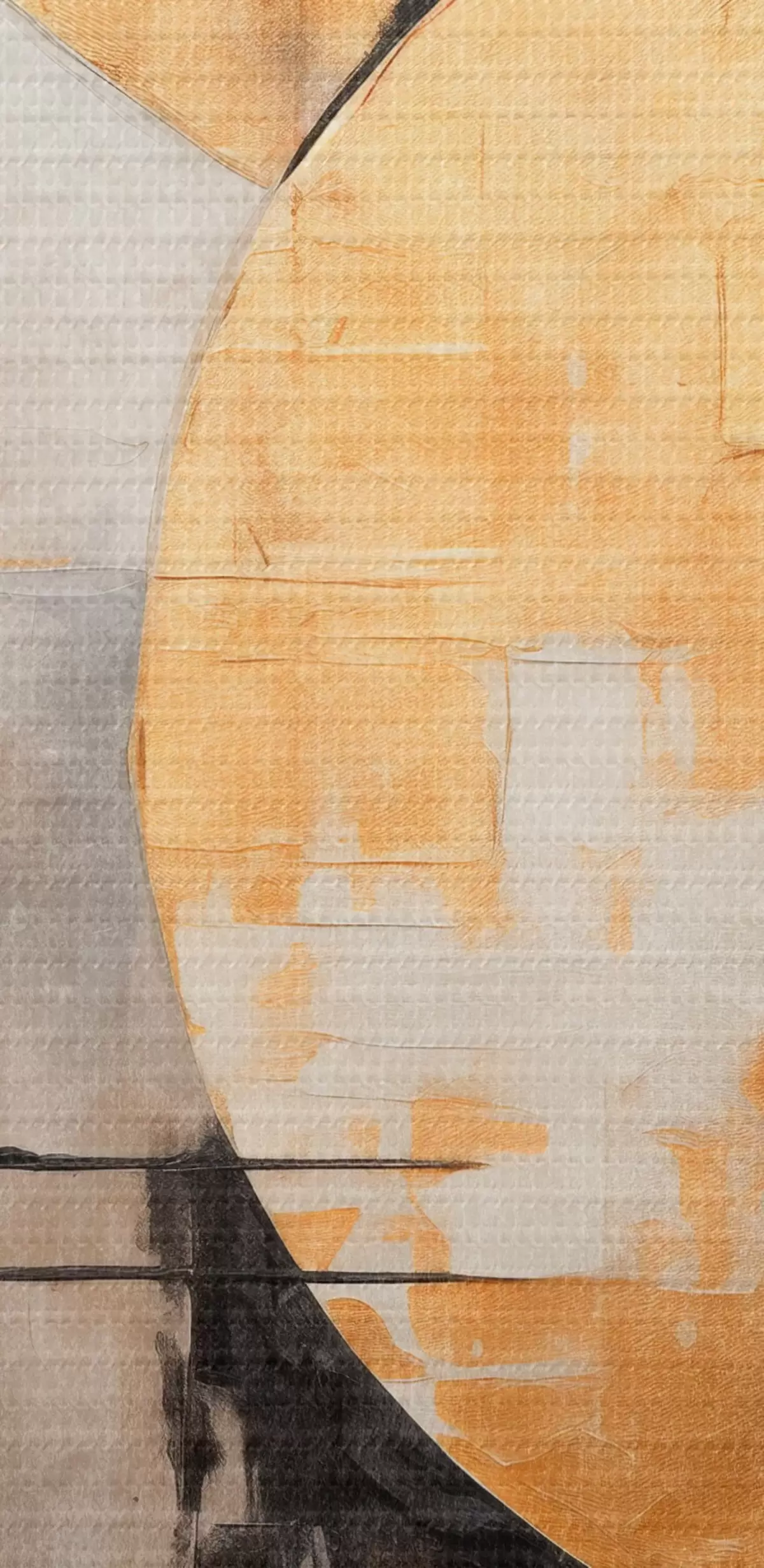 Wandbilder Abstrakte Malerei mit Kreisen, schwarzen und gelben Linien und einem Hintergrund mit grauen und weißen Tönen Art. s45185