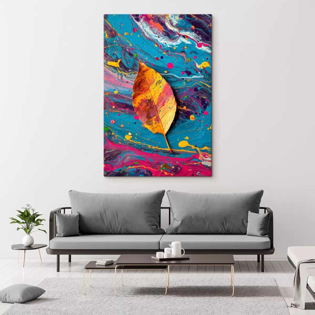 Wandbilder Helle Blatt auf einem bunten Hintergrund: abstrakte Zusammensetzung Art. s45245