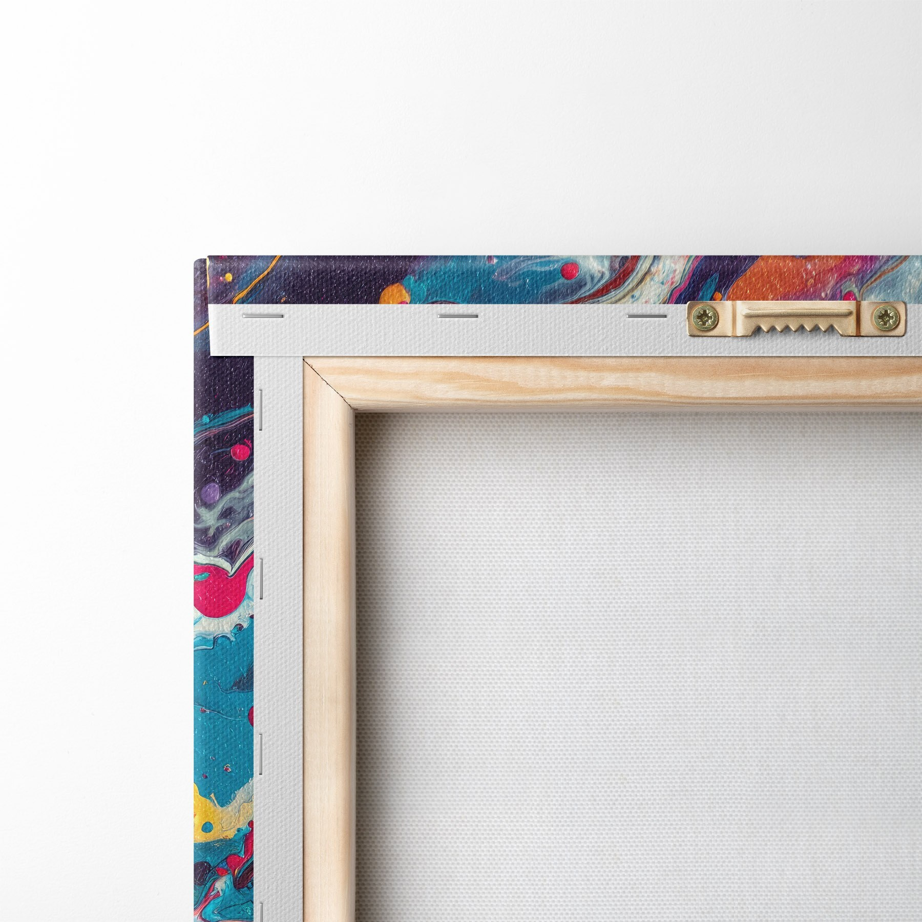 Um die Leinwand auf Keilrahmen zu spannen, ohne das Bild zu beschädigen, verwenden wir ein gespiegeltes Bild.