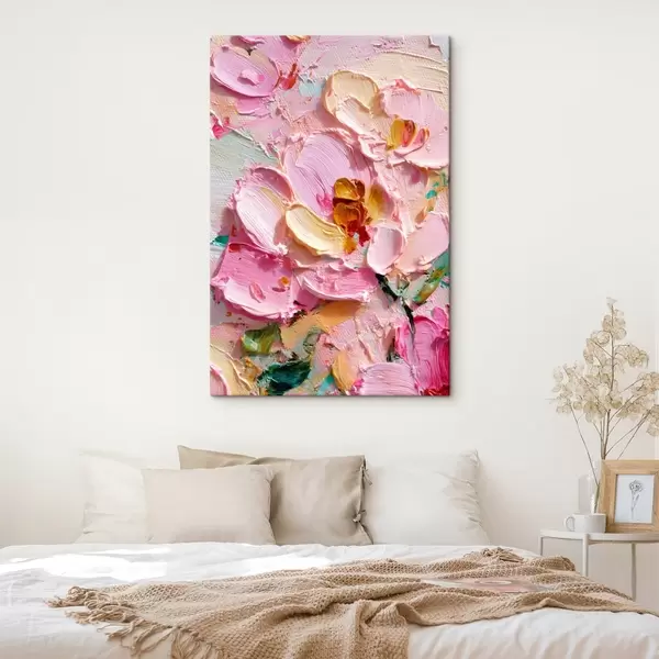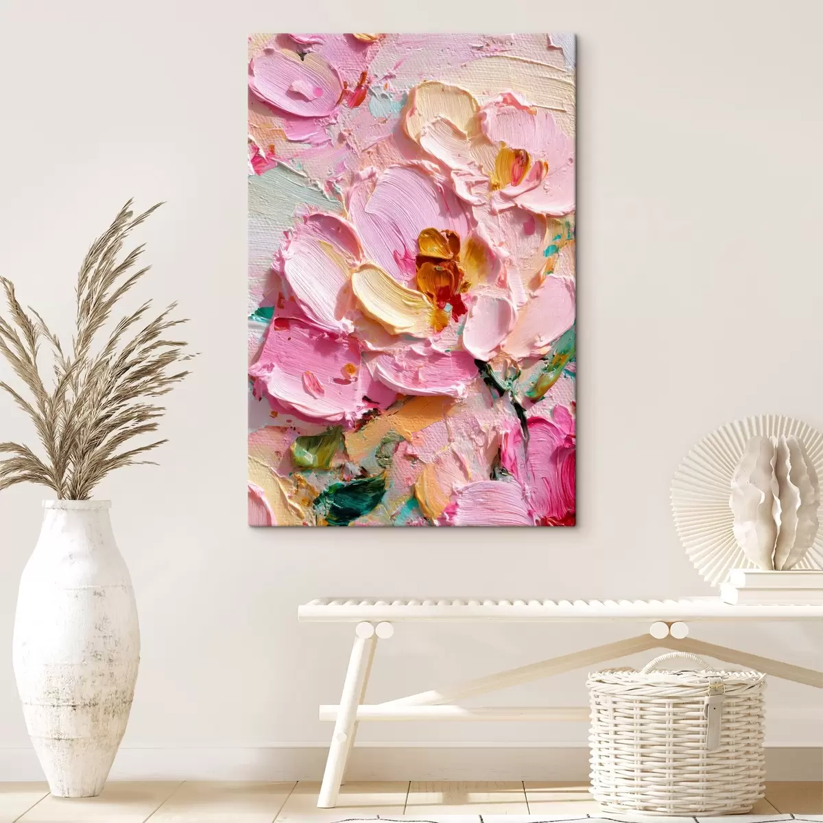 Wandbilder Rosa Magnolien: Strukturierte Malerei mit dimensionalen Strichen Art. s45249