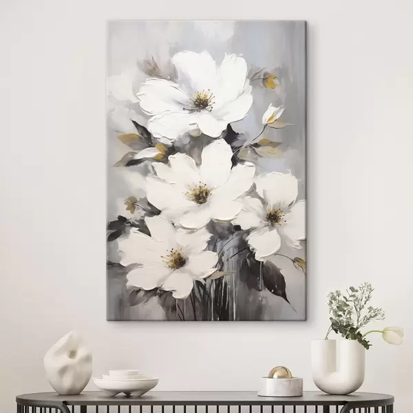 Wandbilder Weiße Blumen: volumetrische Malerei auf grauem Hintergrund Art. s45252