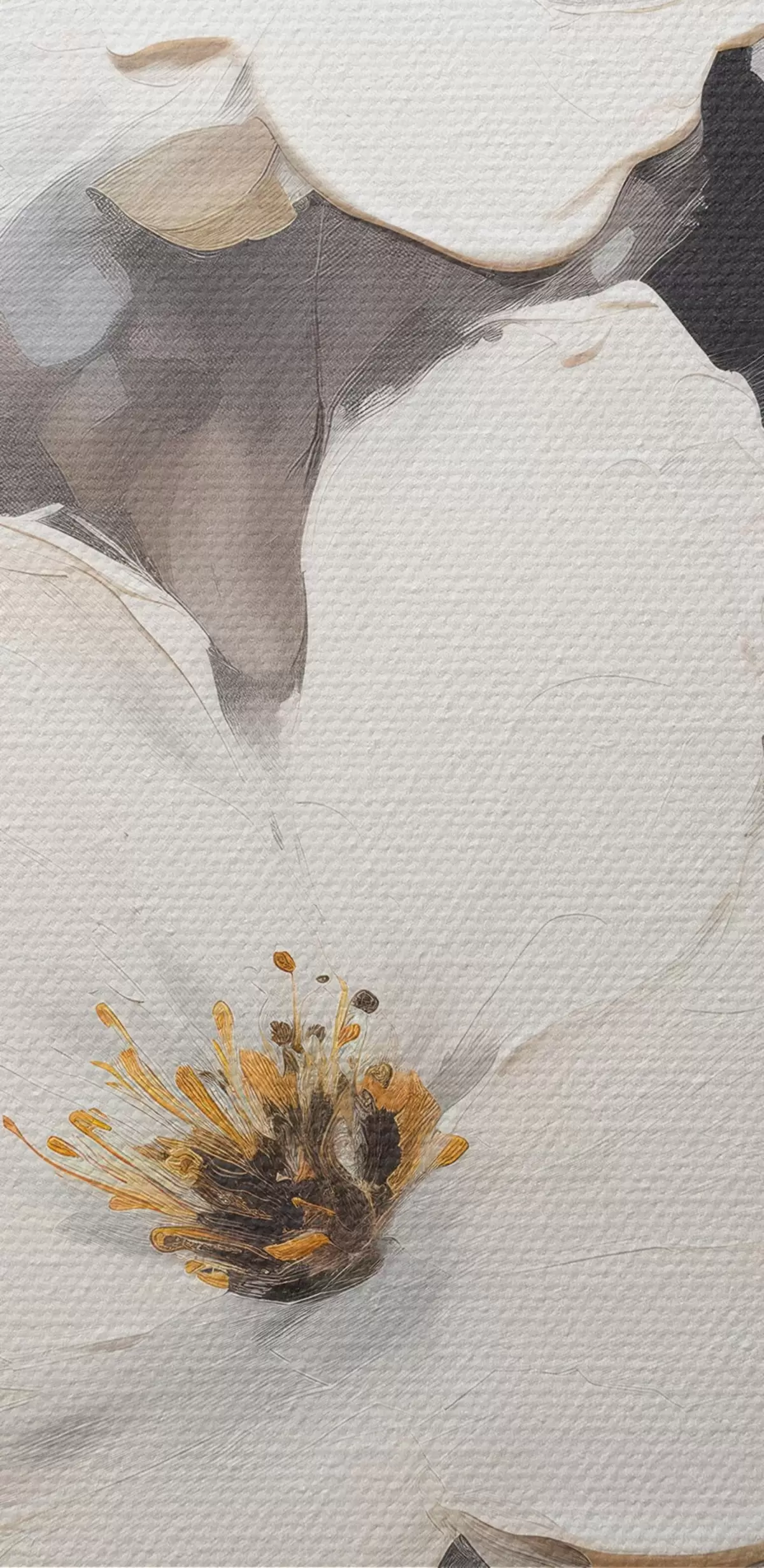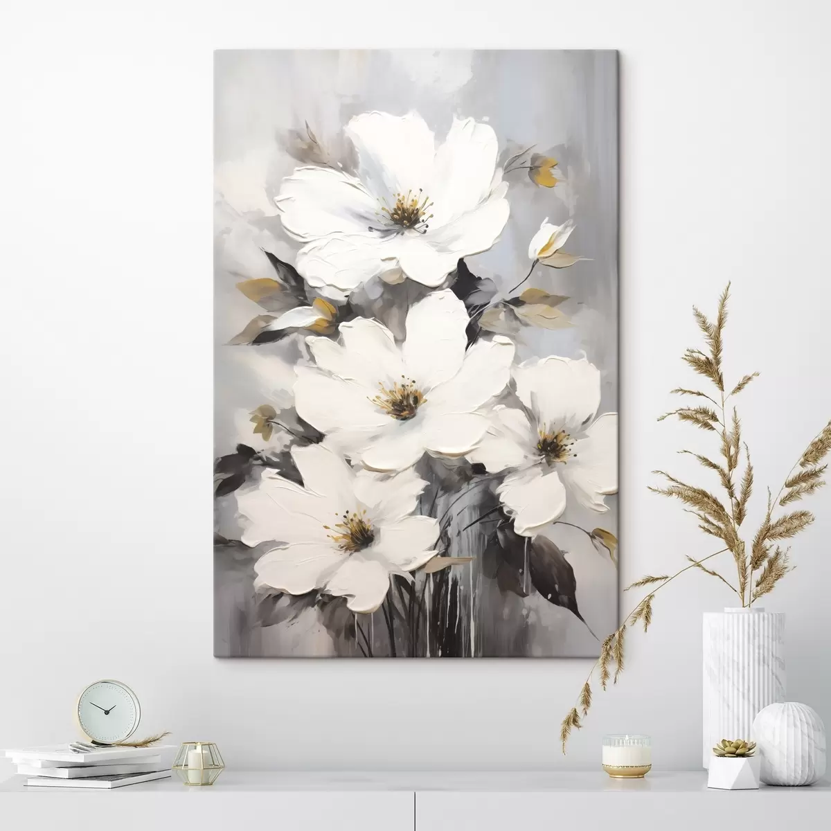 Wandbilder Weiße Blumen: volumetrische Malerei auf grauem Hintergrund s45252
