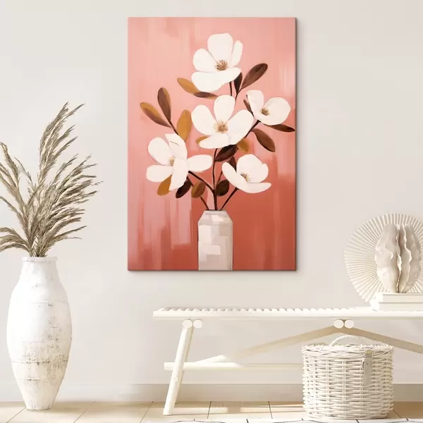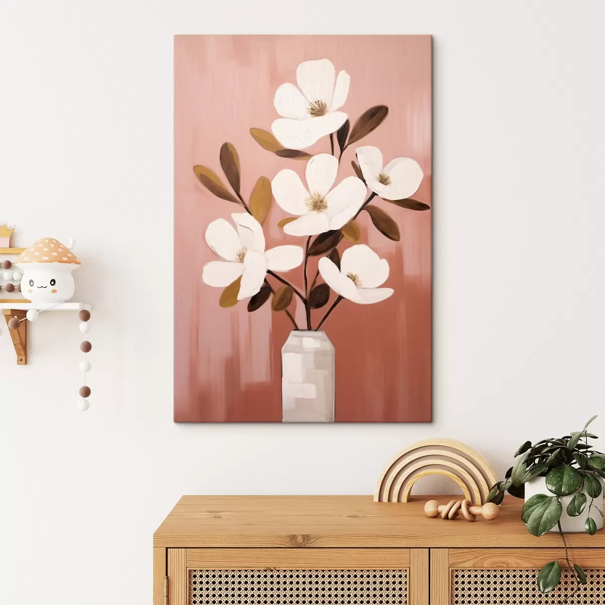 Wandbilder Weiße Magnolien in einer weißen Vase: minimalistische Blumenmalerei Art. s45254