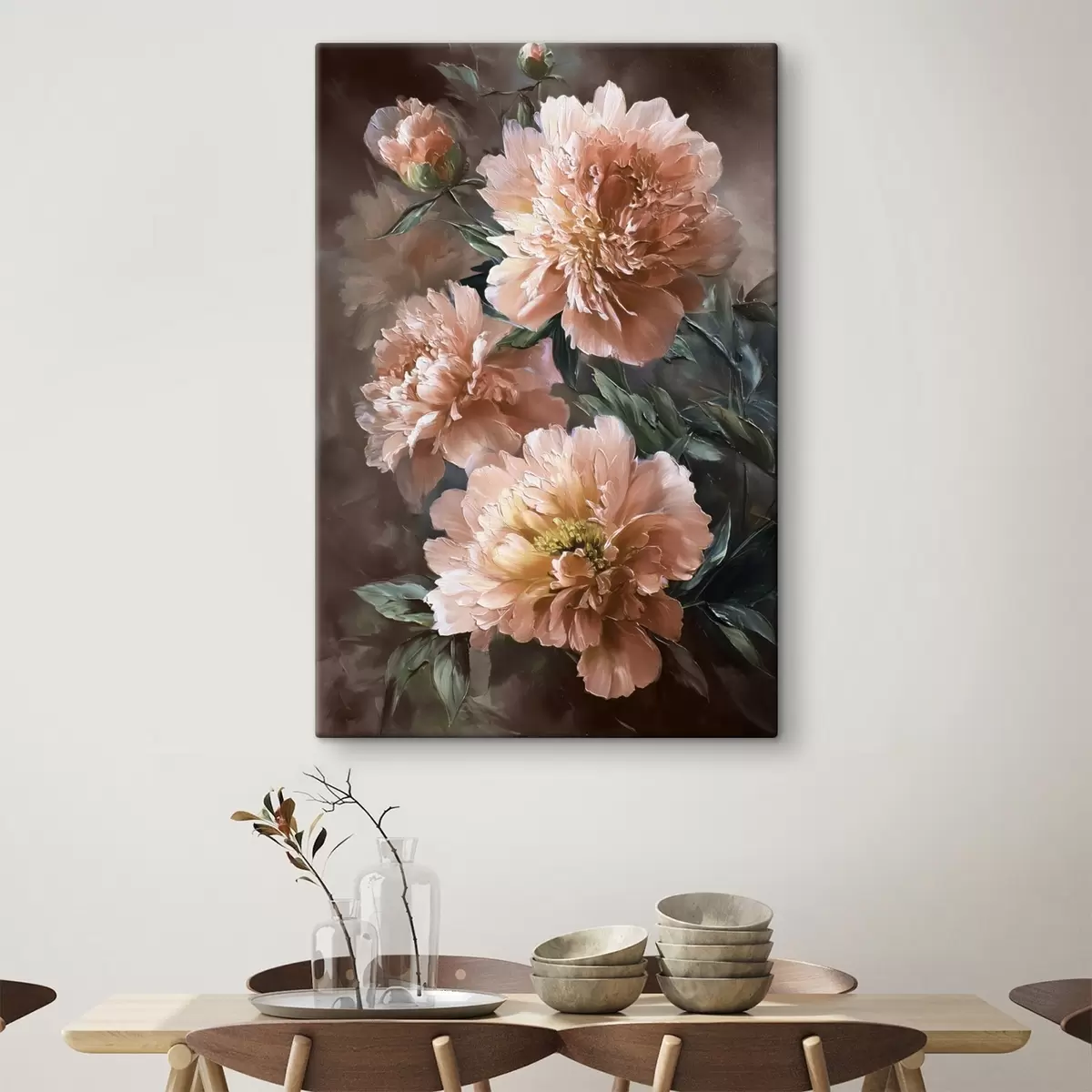 Wandbilder Blumenstrauß aus rosa Pfingstrosen mit fetten Strichen auf dunklem Hintergrund Art. s45260