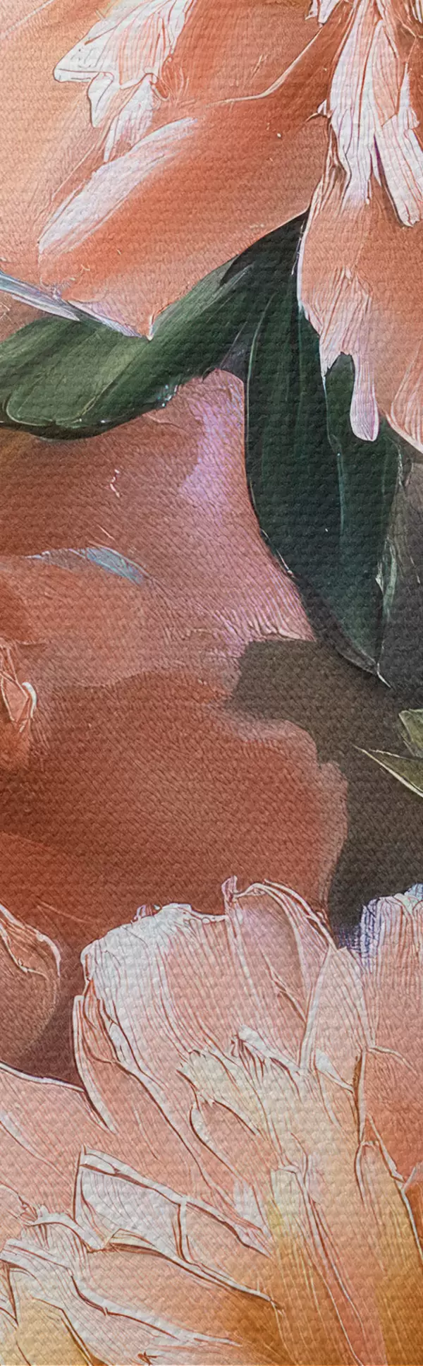 Drei Materialtypen stehen zur Verfügung: Economic Canvas - ein dichtes und haltbares Material für den Digitaldruck, identisch mit Malerleinwand, wasserfeste Oberfläche, realistische Wiedergabe von Details, mittelkörniges Material. Premium Canvas - die Textur ähnelt der einer Malerleinwand (verwobene kleine Fäden). Weiche, detaillierte Wiedergabe des Bildes auf einer matten Oberfläche. Eco-Premium - hochwertiges Gewebe aus 100% Baumwolle. Dank der natürlichen Baumwollfasern ist das Material langlebig und verschleißfest. Hervorragende Farbwiedergabe und Detailtreue.