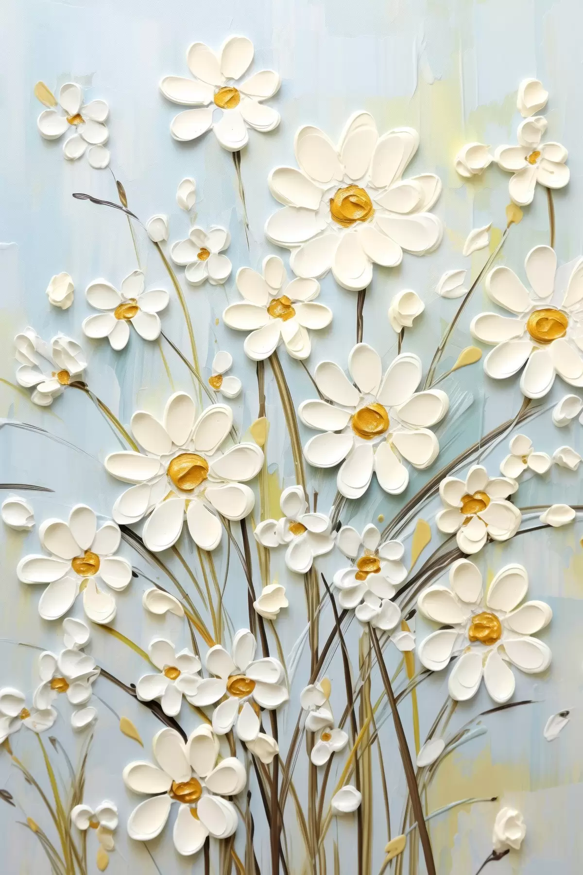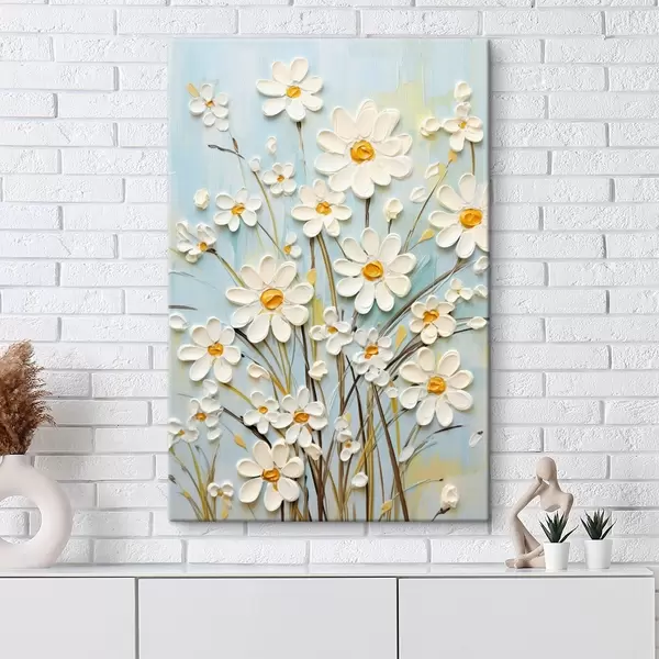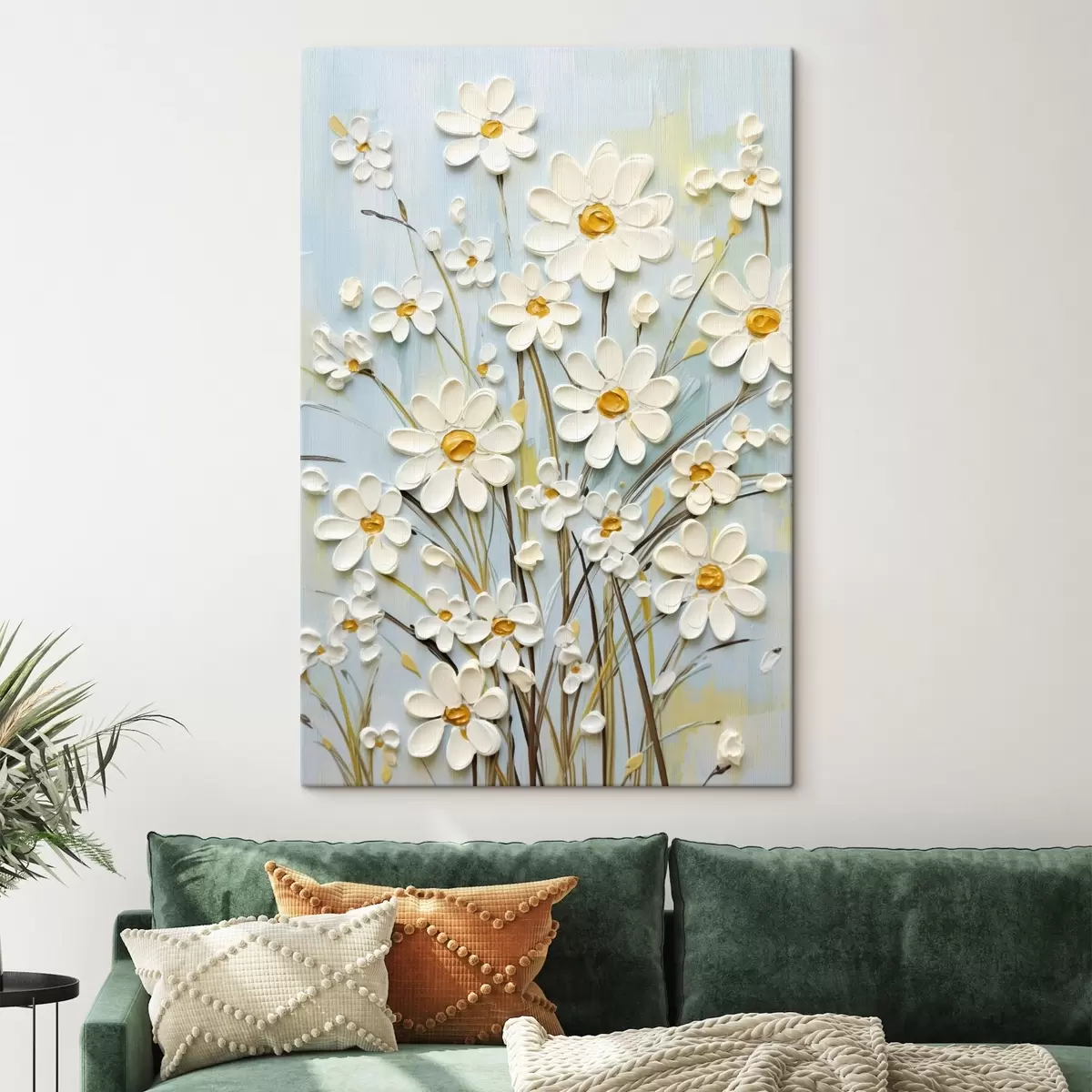 Wandbilder Strukturierte Gänseblümchen: Impasto-Kunst mit ausdrucksstarken Pinselstrichen Art. s45266