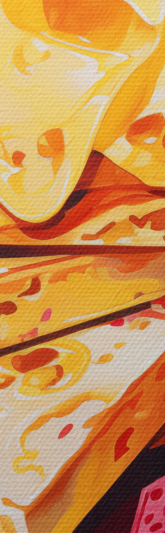 Um die Leinwand auf Keilrahmen zu spannen, ohne das Bild zu beschädigen, verwenden wir ein gespiegeltes Bild.