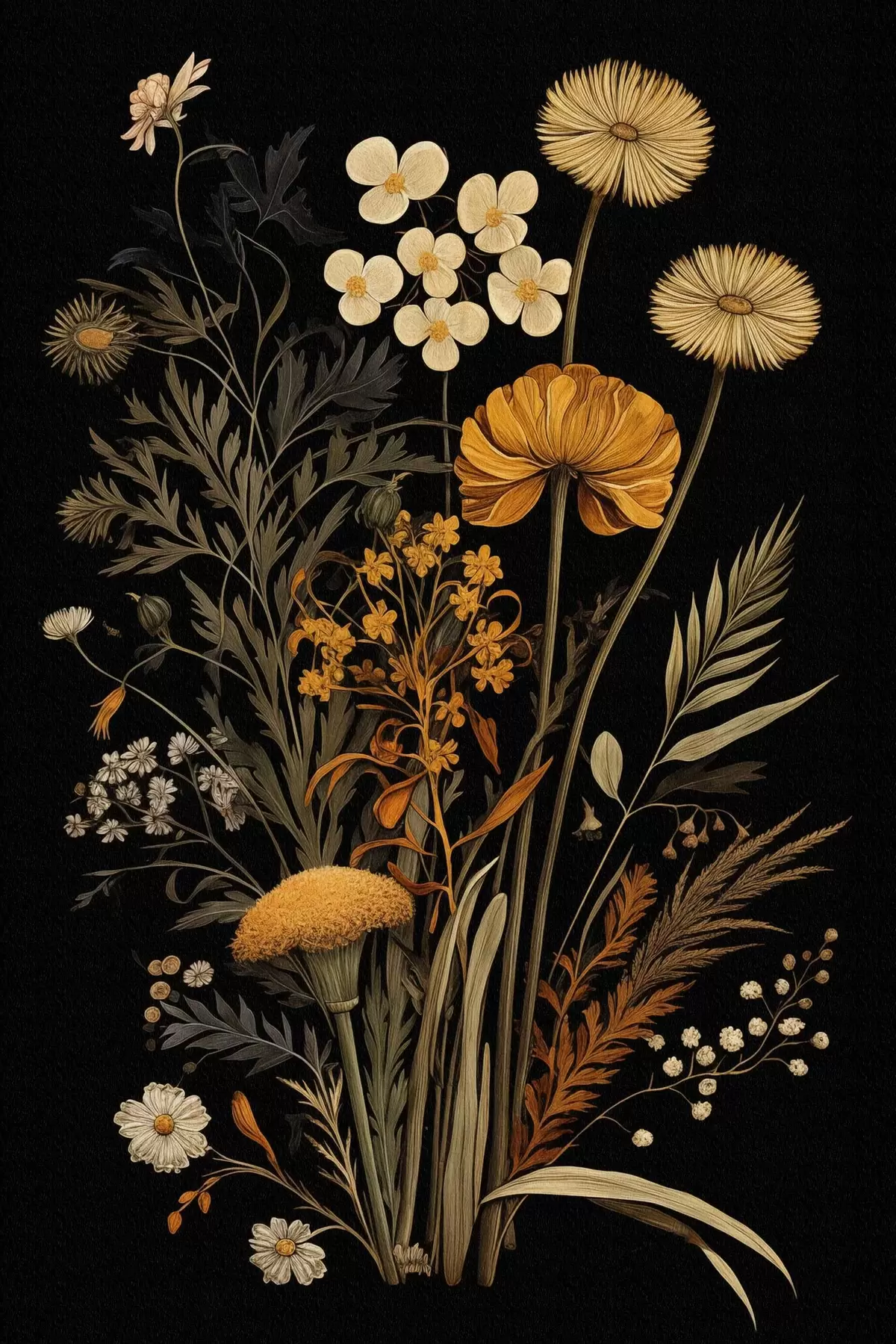 Wandbilder Wildblumen in dunklen Farben Art. s45271