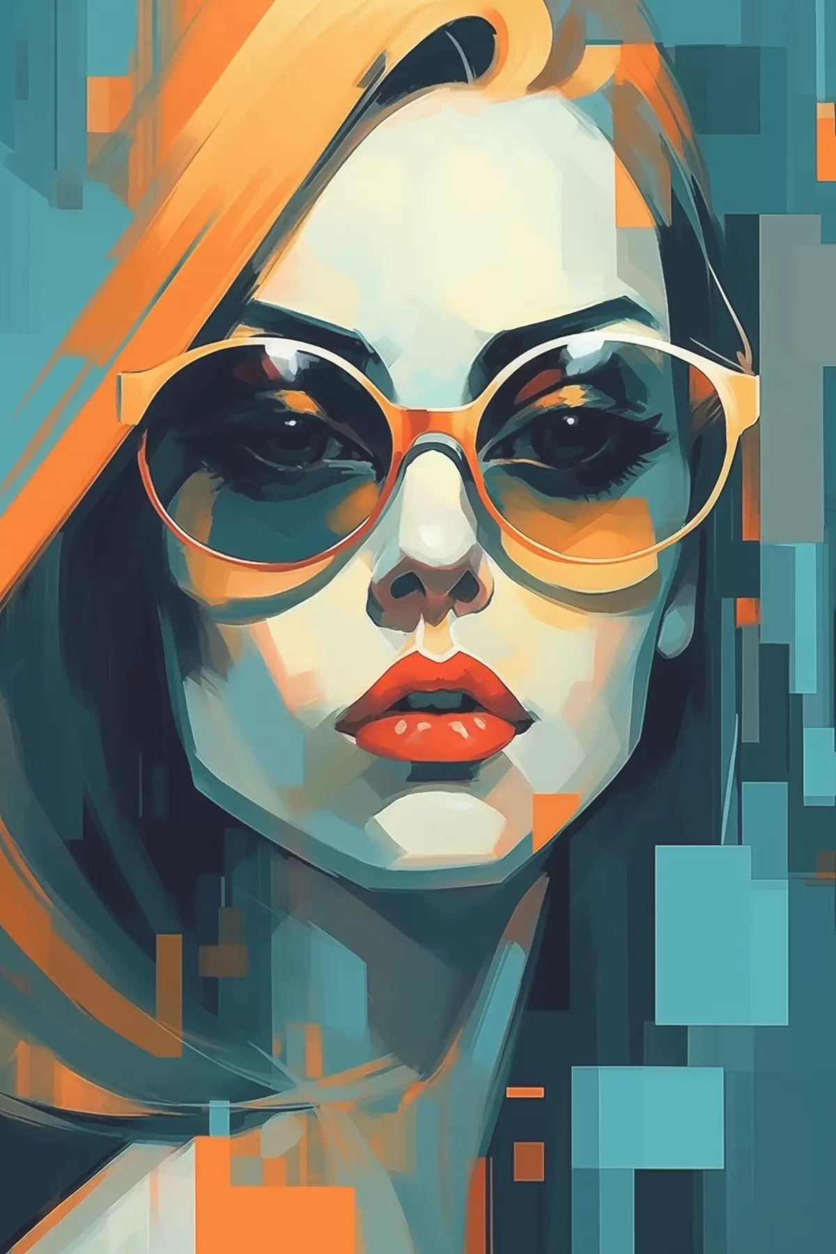 Wandbilder Frau mit Sonnenbrille im digitalen Pop-Art-Stil Art. s45327