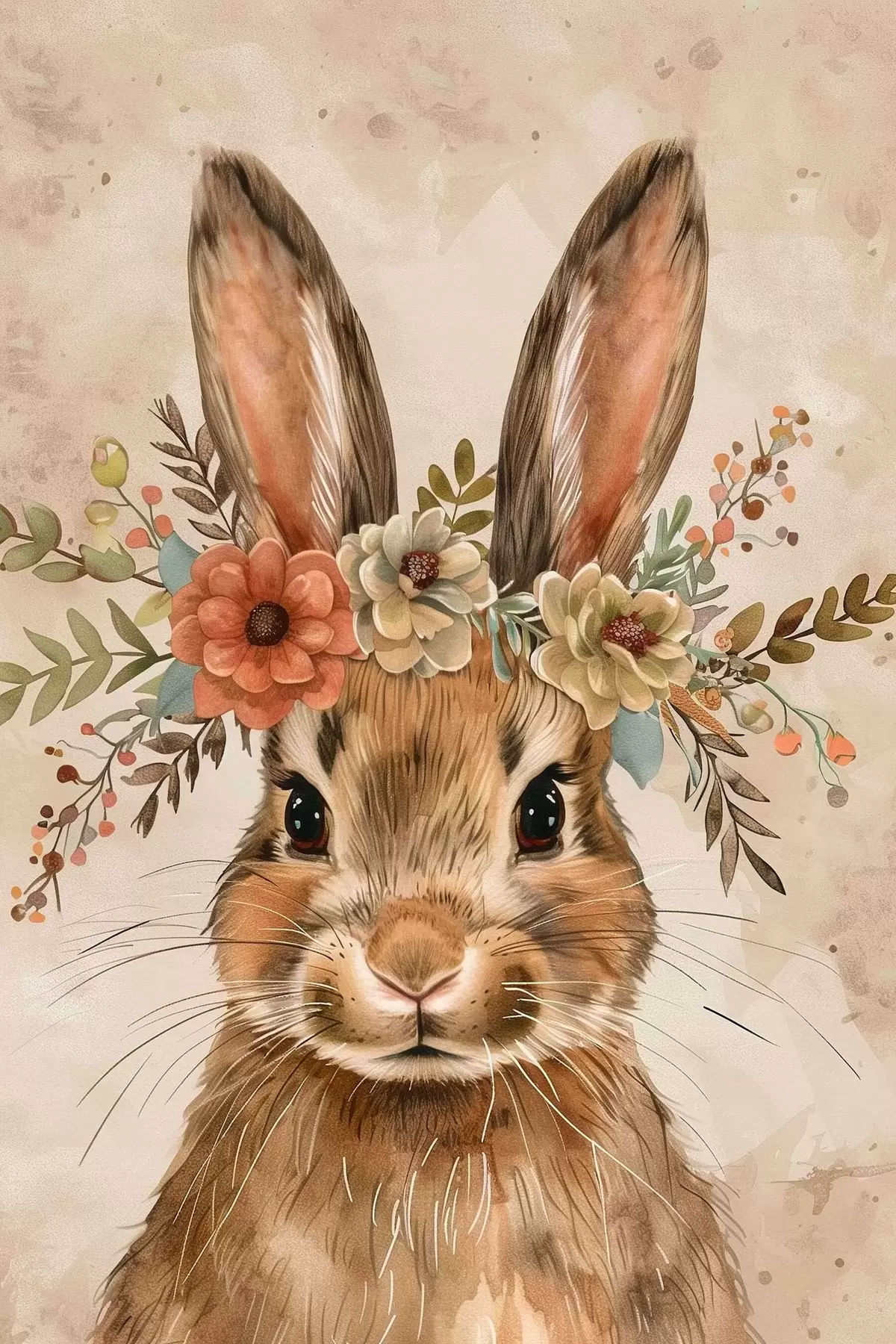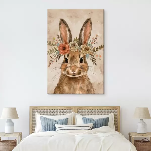 Wandbilder Niedlicher Hase mit Blumen im Aquarellstil s45332