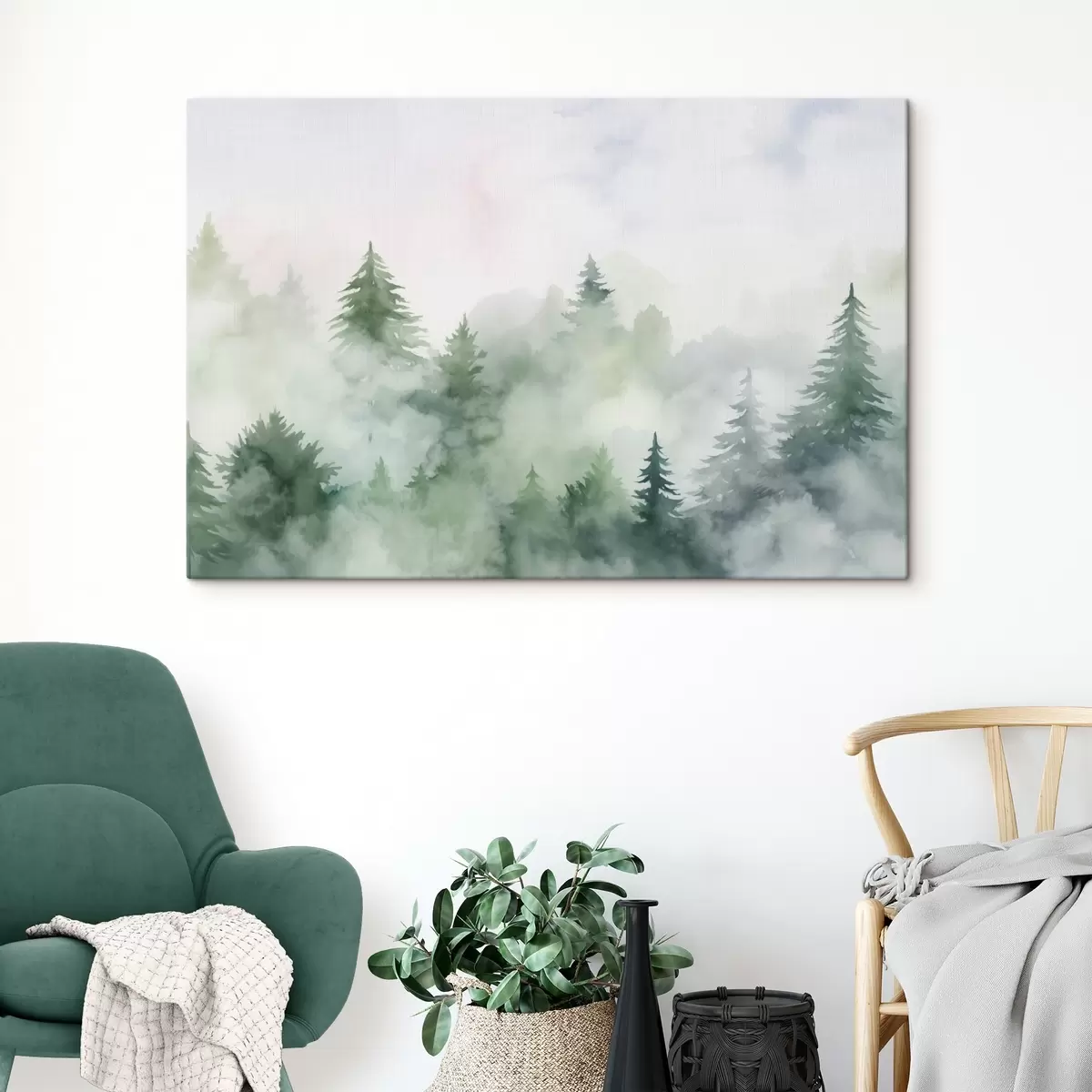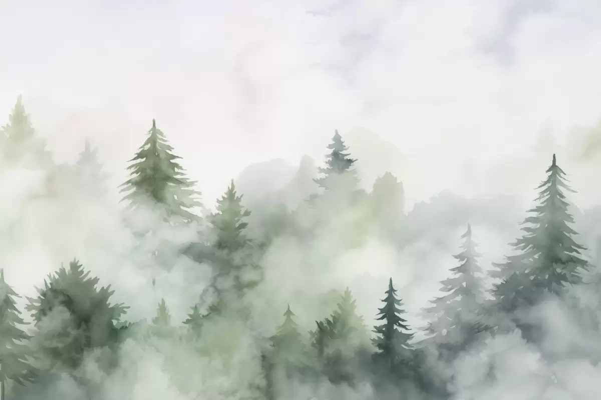 Wandbilder Wald im Nebel Nachahmung von Aquarell Art. s45343