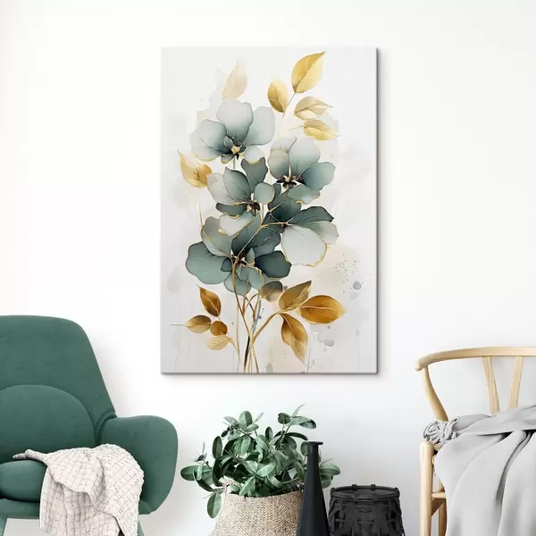 Wandbilder Abstrakter Zweig mit Blumen und Blättern Art. s45367