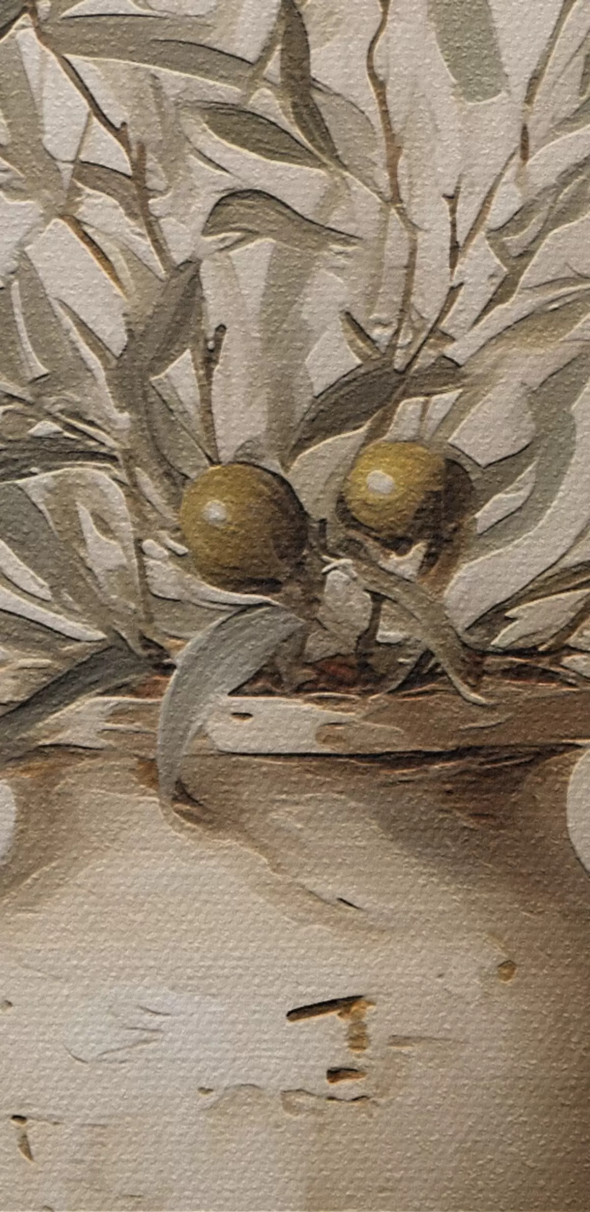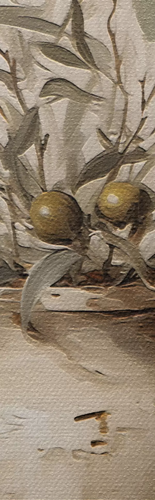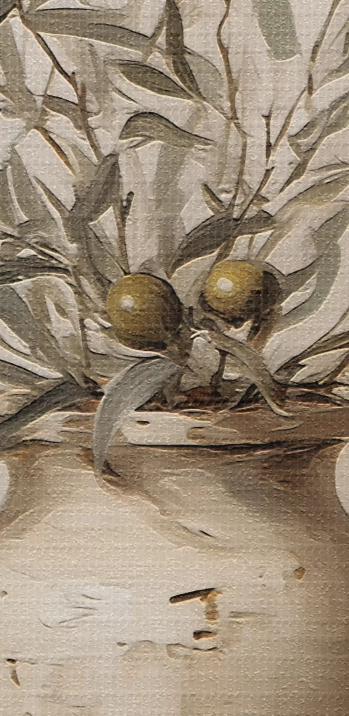 Das Bild kann vorsichtig mit einem trockenen, weichen Tuch oder Schwamm abgewischt werden; es wird nicht empfohlen, feuchte Produkte zu verwenden. Die Verwendung eines feuchten Schwamms ist nur zulässig, wenn das Bild lackiert wurde.