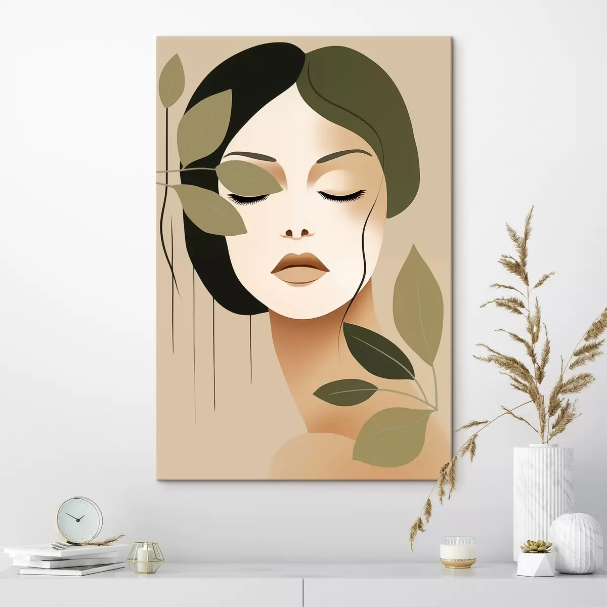 Wandbilder Mädchen mit Blättern s45390